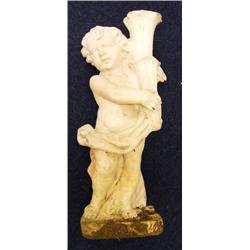 White painted reconstituted stone cherub bird bath pedestal, 2'6" tall