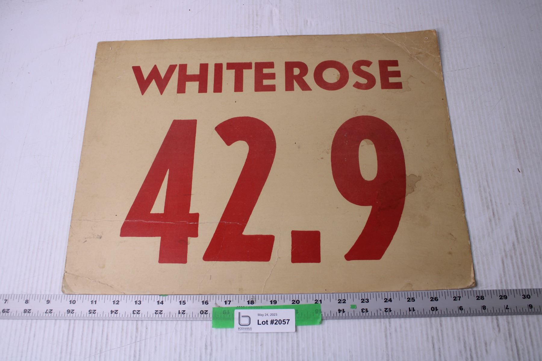 White rose Gas Oil Price Cardboard Sign - 18 1/2" x 14"