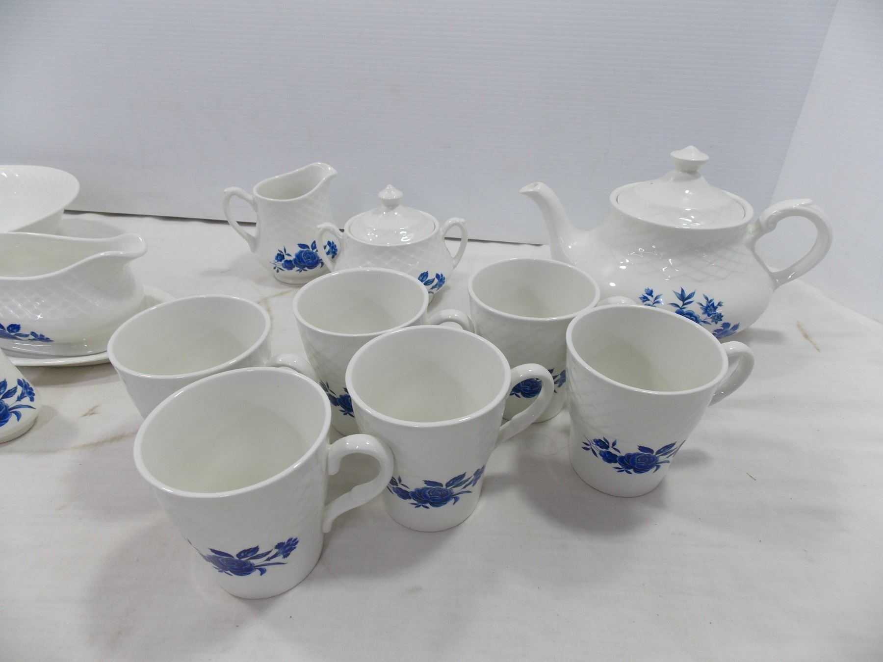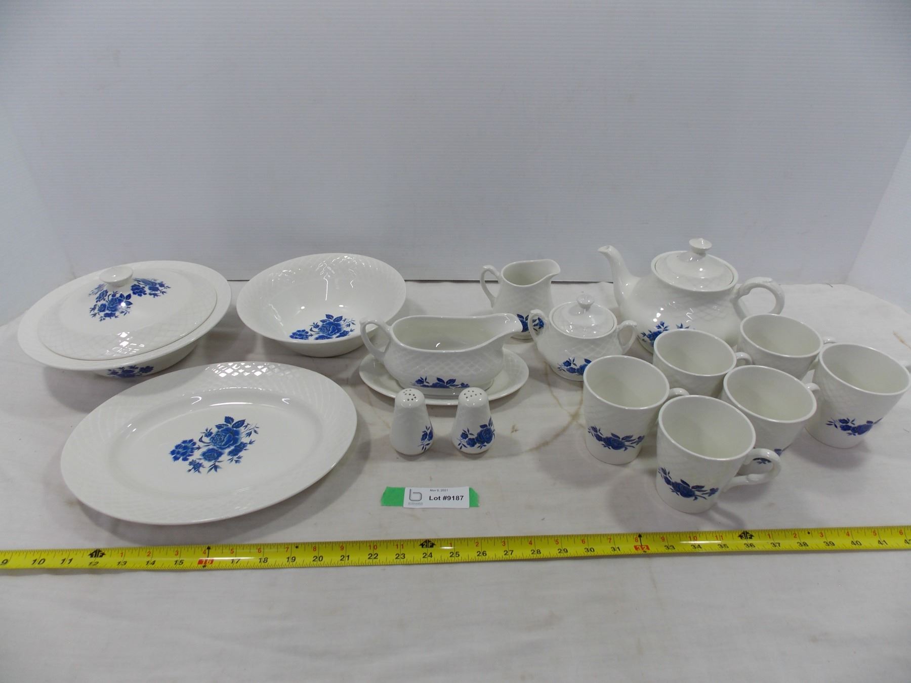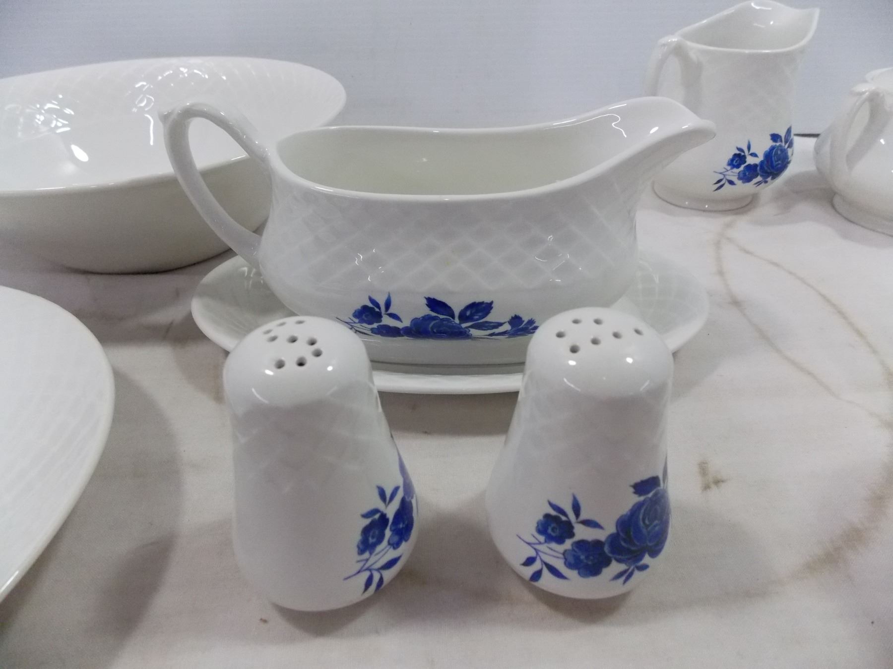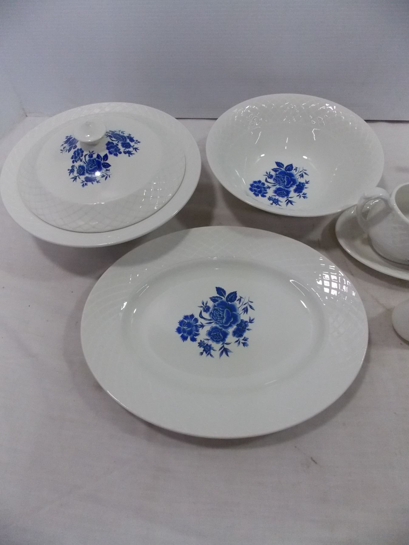White w/ Blue Flower Dish Set