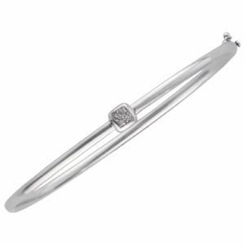 14k White Gold Bangle Bracelet featuring an Square cluster of