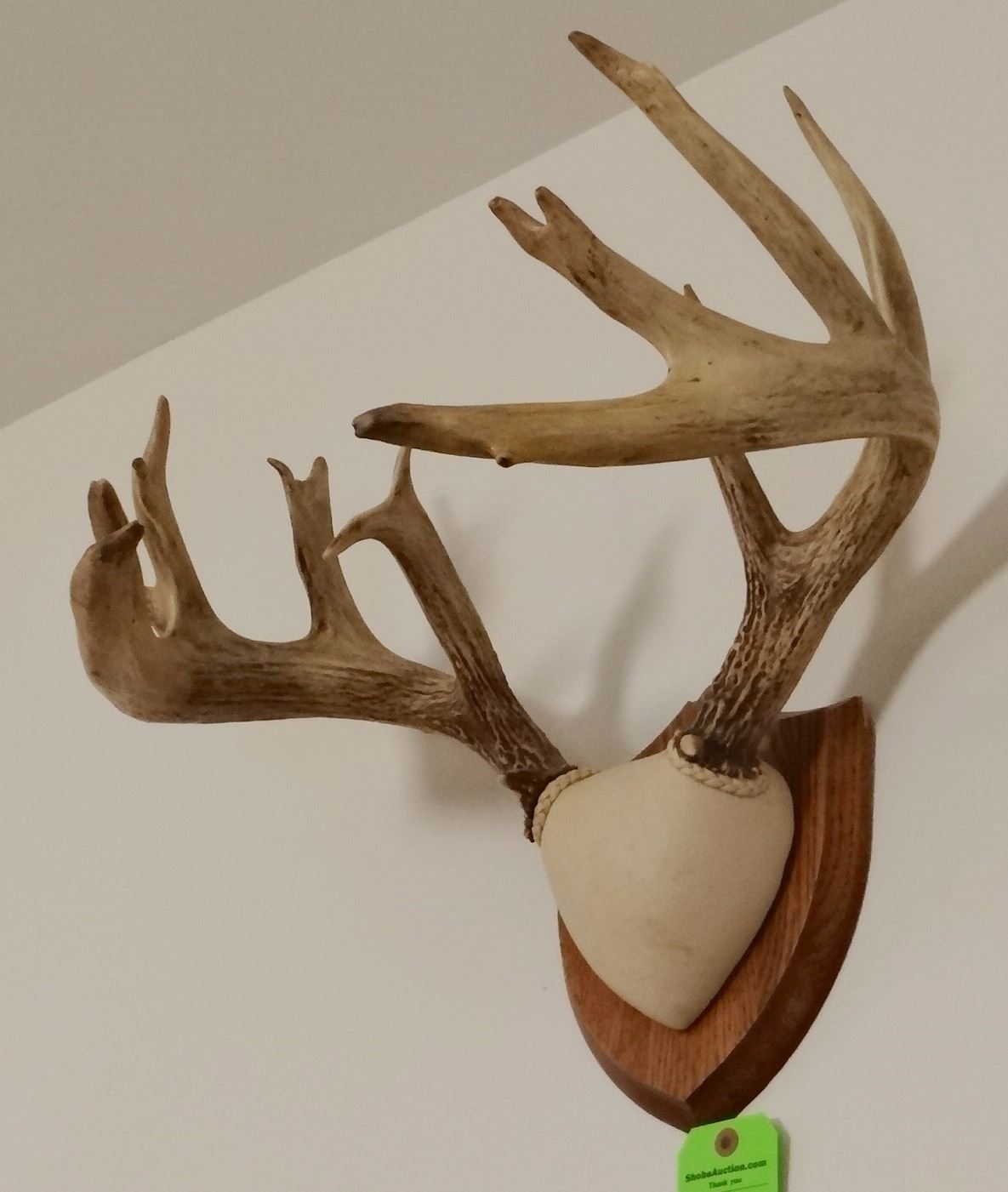 Whitetail Deer plaque mounted antlers, 10x7, non-typical, 18"w, 12"h