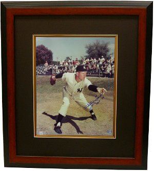 Whitey Ford spent his entire 18-year career and won 236 games for the New York Yankees. He was a 8 time All-Star selection, a 6 time World Series champion, won the 1961 Cy Young Award, and won the 1961 World Series MVP. He was voted into the Baseball Hall of Fame in 1974 and the Yankees retired his number 16. Whitey Ford has hand autographed this New York Yankees 16x20 Photo with HOF74 inscription. Certificate of Authenticity from Athlon Sports. Custom Black Mat and Wood Framed as shown.