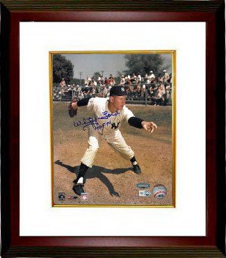 Whitey Ford spent his entire 18-year career and won 236 games for the New York Yankees. He was a 8 time All-Star selection, a 6 time World Series champion, won the 1961 Cy Young Award, and won the 1961 World Series MVP. He was voted into the Baseball Hall of Fame in 1974 and the Yankees retired his number 16. Whitey Ford has hand autographed this New York Yankees 8x10 Photo with HOF 74 inscription. MLB Hologram and Certificate of Authenticity from Athlon Sports. Custom White Mat and Premium Mahogany Frame as shown.