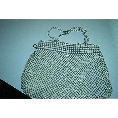 <table width="100%" border="0" cellspacing="0" cellpadding="4"><tr><td><em> </em></td></tr><tr> <td width="100%"> Featuring a white enamel painted beaded Whiting and Davis Clutch Purse. White tag still attached on the inside. Two Handles. Navy Blue lining with an extra pocket on the inside. Chain and zipper appear to be copper. Meaurements: 11 inches long by 7 1/2 inches tall; Some of the enamel paint has come off the handles but, otherwise in excellent condition. Lovely Whiting and Davis Purse. </td></tr><tr> <td> </td></tr><tr> <td>Reference #: 720B</td></tr><tr><td>Condition:Excellent</td></tr><tr><td>Year:1940's</td></tr><tr><td>Maker:Whiting & Davis</td></tr><tr><td>Title:Whiting & Davis Purse</td></tr><tr><td>Style:Beaded Clutch Style</td></tr><tr><td>Location:Letart, West Virginia</td></tr></table>