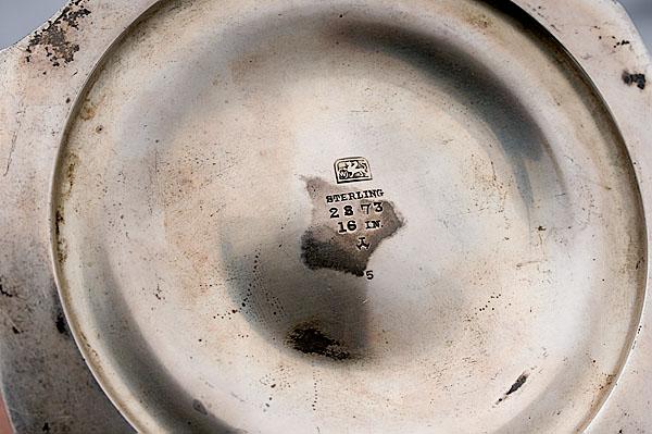 American, date cypher for 1915, griffin mark, weighted; 16" high. Gross weight, 22.345 ozt.