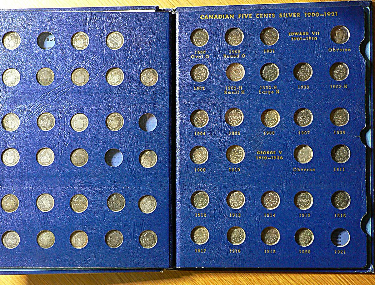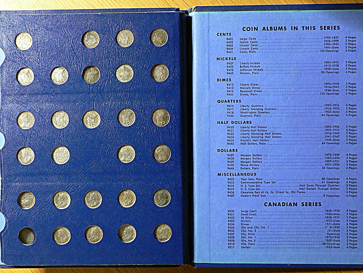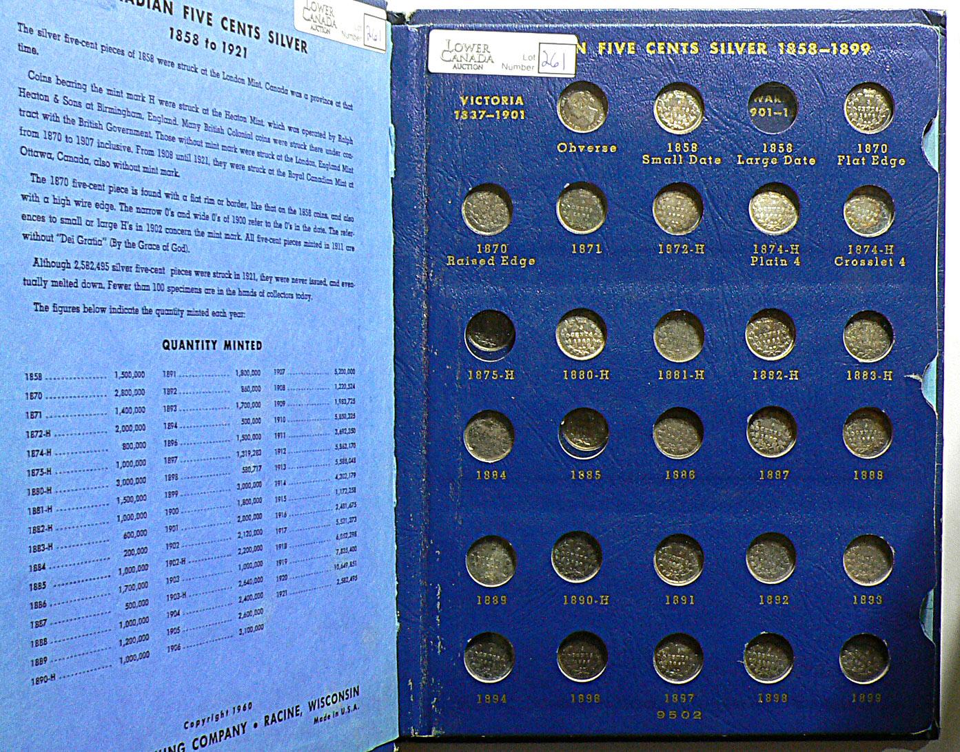 Whitman Album 1858 to 1920, Small Five cents, 53 coins, grade from G to EF, Check it out!!! Worth a look!!!!