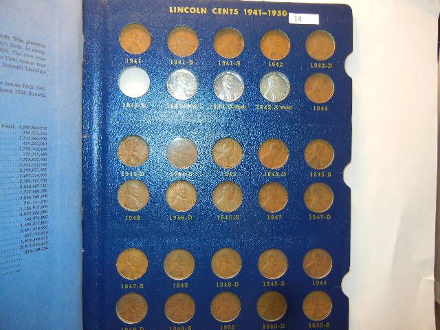 Whitman Collector Book of Lincoln Head Cents 1941 to 1972 - 5 Coins missing from set