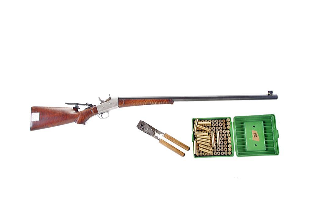 Whitney Laidley Target Cal .45-90 SN:NVSN Great looking restored target rifle for LONG range shooting. Single shot rolling block action, pistol grip stock with cheek piece, new or refurbished heavy octagonal 32" barrel, adjustable long range peep sigGreat looking restored target rifle for LONG range shooting. Single shot rolling block action, pistol grip stock with cheek piece, new or refurbished heavy octagonal 32" barrel, adjustable long range peep sight and hooded ghost ring front sight with integral level, good bore and action. Condition: Excellent as restored. Includes reloading dies, bullet mold and 100+ empty brass for reloading.