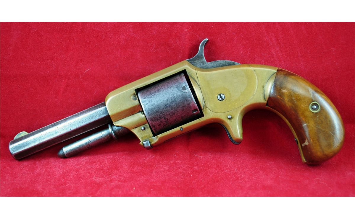Whitneyville Armory Model 2, 32 Cal. Revolver, Ser.# 1769, Mfg 1871-1879, 3.5" Inch Bbl., Brass Frame. Pistol is being sold for decorative and collecting purposes NOT for firing. See photos for more information.Kennedys Auction Service has not attempted to test fire any gun in this auction and all guns are sold
