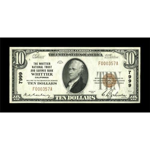 Whittier, CA - $10 1929 Ty. 1 The Whittier