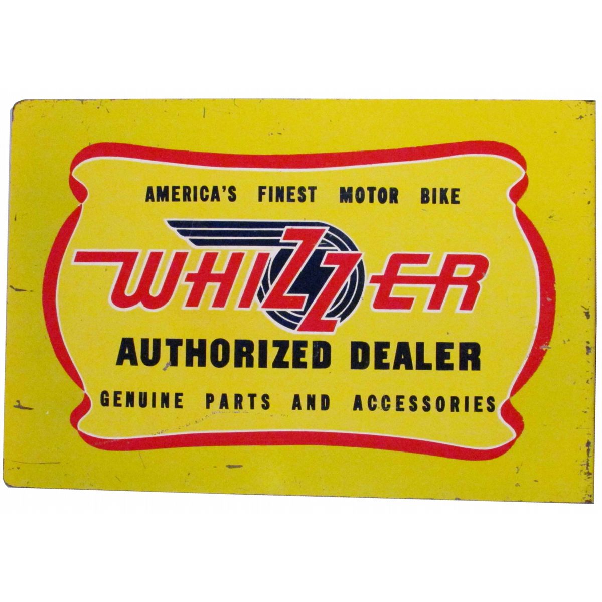 Rare Whizzer Authorized Dealer Steel Flange Sign. Very minor paint loss both sides otherwise good condition. 15 X 10 inches.
