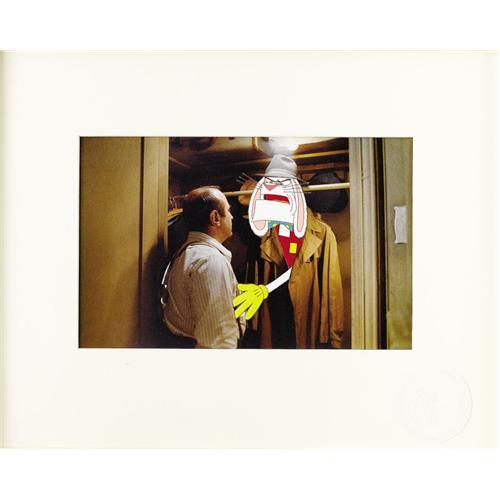 <B>"Who Framed Roger Rabbit" Production Cel Original Art (Walt Disney, 1989).</B></I> Roger pops out of Eddie Valiant's trench coat, looking like Dick Tracy, a parody complete with the lawman's unmistakable square, pointed jaw, in this hand painted cel, presented on a photographic print background. The image area measures 13" x 8.25", and the condition is Excellent. Includes a certificate of authenticity. <I>From the Estate of Bruce Hamilton</B></I>. <BR><BR><B>Important notice:</B> Heritage usually auctions material at the rate of 200-250 lots per hour. On some occasions eBay Live bid software or the Internet may not be able to keep up with the pace of the auction. We recommend placing a realistic absentee bid now as insurance to avoid disappointment. Occasionally the auctioneer may eliminate or reject an eBay Live bid, and the auctioneer may also reopen a lot after the close of the eBay live bidding (usually because we missed an audience bid), and may reject your bid even if it shows you as the winning bidder. By bidding via eBay Live, you agree that Heritage may award the lot to another bidder at its sole discretion under the circumstances described above or any other reasonable circumstances. Since eBay bids are not shown to us until we open the lot on the floor, we treat those bids just like floor bids. In most cases the floor responds before the eBay bid is presented to us, due to Internet lag time, so for consistency we have made it a policy that floor bids are always considered first over tie eBay live bids. Also please note that all Heritage lots purchased through eBay Live carry a 22.5% Buyer's Premium. Please make sure you read the Terms and Conditions before you bid. This lot is being auctioned in conjunction with a live floor auction by Heritage Auction Galleries. All final auction and invoice information will be supplied by Heritage Auction Galleries, and all other information should be considered preliminary. Lot:41001 <BR><BR><B>Winning Notification and Billing:</B> After the FINAL session in this auction is complete, Heritage will send e-mail and snail mail invoices. This process normally takes several days. All final auction and invoice information will be supplied by Heritage Auction Galleries, and all other information should be considered preliminary. <BR><BR>This auction will be conducted on a live auction floor and over the Internet through eBay Live. If you choose to place an absentee bid, please take a moment to <font color='#0000ff'><u><a href='http://pages.ebay.com/liveauctions/help/before/laabsentee.html'>learn how eBay Live absentee bidding works</a></u></font><font color='#000000'>