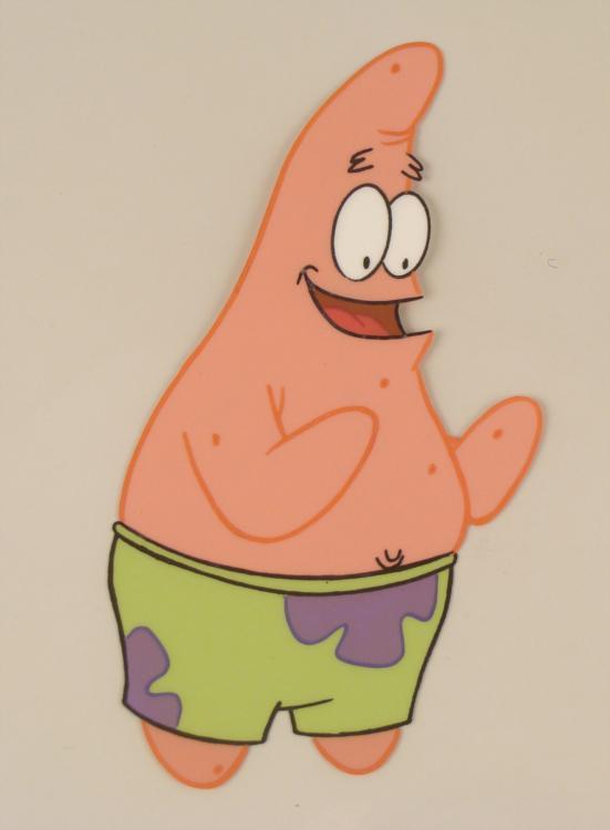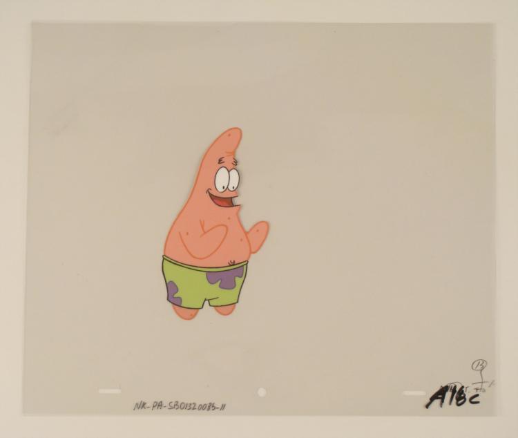 This original animation cel is from the Nickelodeon TV show SpongeBob Squarepants. The story takes place under the deep blue sea in Bikini Bottom, where SpongeBob resides. SpongeBob, who is a yellow, porous sponge, is your typical happy-go-lucky character, as he is always cheerful and enjoys making people laugh. Patrick Star, SpongeBob's neighbor who is a starfish, is your average children's show idiot, as he boasts knowing nothing and is often getting himself into ridiculous situations. Between the homes of these two lies the home of the miserable Squidward, a squid, who is known for being grouchy and playing tricks on SpongeBob and Patrick. Both SpongeBob and Squidward work at the Krusty Krab, a fast food business run by the greedy money-loving Mr. Krabs, a crab, the arch rival of the evil, possibly misunderstood, Plankton. Another neighbor, Sandy Cheeks, an athletic squirrel who normally wears an astronaut's space suit, was introduced in "Tea at the Treedome." She spends most of her time inventing and experimenting. * Who is Patrick Star? * Original Production Animated Cel Overall Size of Cel: 10 1/2" x 12 1/2" Very Good Condition This is an original hand-painted cel set-up used in the production of an episode of "SpongeBob SquarePants." Each one-of-a-kind set-up represents a slight change in position of the characters. When individually photographed and projected in rapid succession, the images appear to move. * To create production cels, the original animator's drawing is transferred onto an acetate cel (by hand-inking and/or photo copying). The cel is then hand-painted on the reverse side. * The cel is ready to be matted and framed. The animator's notations are at the bottom of the cel. The cel has multiple layers; first is Patrick's upper body and the second cel is Patrick's lower body. *