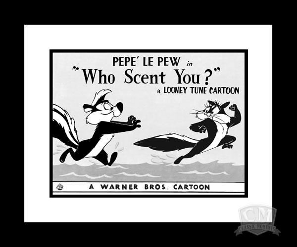 This framed limited edition 16x20 giclee lobby card entitled “Who Scent You?,†is a 1960 cartoon directed by Chuck Jones. This edition is limited to 500 hand-numbered pieces. Originally, “Lobby Cards†were created to publicize each cartoon and were u