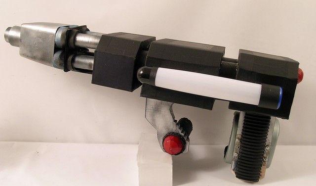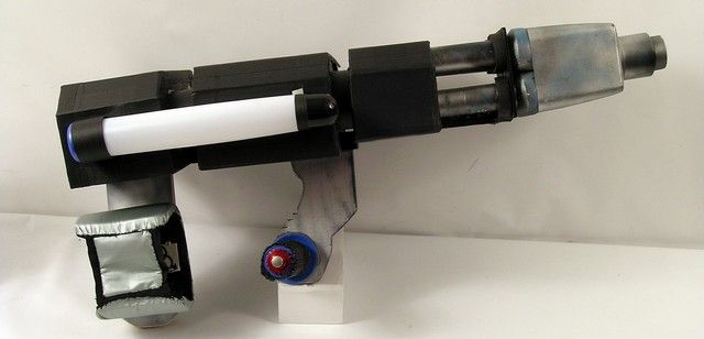 Who Wants to Be a Superhero? (2007) was a reality show hosted by Stan Lee. Contestants dressed up a superheroes of their own invention and Lee chose one who would then become a character in a new Dark Horse Comic written by Lee himself. One of the major breakout characters was Steel Chambers who called himself the "Ironic Enforcer". Lee liked him so much that he had him return to the show as a bad guy called "The Dark Enforcer". The Enforcer had an elaborate "blaster" weapon. This is the one-on-only weapon used by him throughout the series
