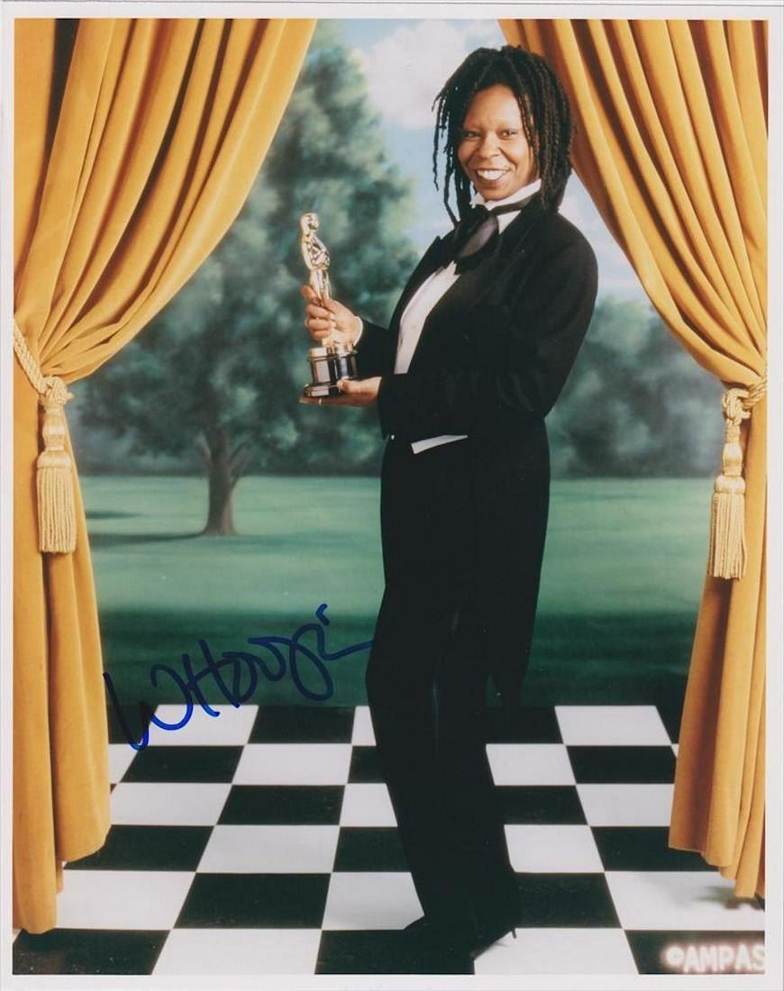 A colour glossy photograph signed in blue felt tip ink by Whoopi Goldberg. 10x8 inches.