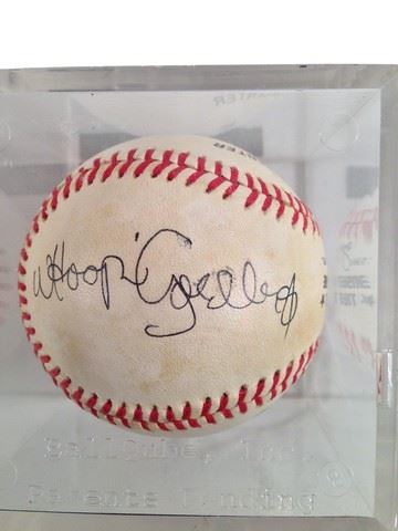 Whoopi Goldberg signed baseball in plastic display case (3"x3"). An accomplsihed award winning actress and comedian, this is a very unique collectible to own.