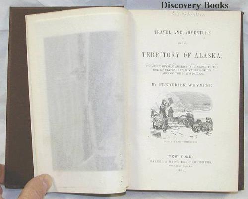 Whymper, Frederick. TRAVEL AND ADVENTURE IN THE TERRITORY OF ALASKA, FORMERLY RUSSIAN AMERICA - NOW CEDED TO THE UNITED STATES...... New York: Harper & Bros 1869 xviii(2),21-353pp. Plates, illus, folding map. Original blind & gilt stamped brown cloth, lettered in gilt on spine, and with gilt vignette of men with dog sled on front. An exceptionally clean, bright copy, little used.
