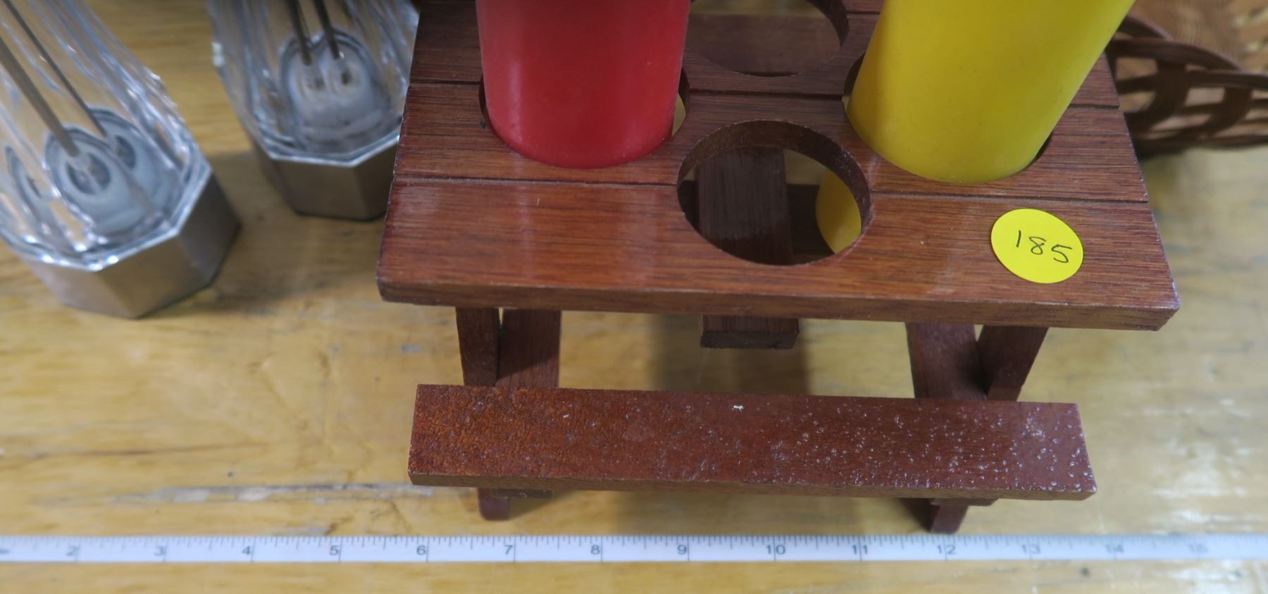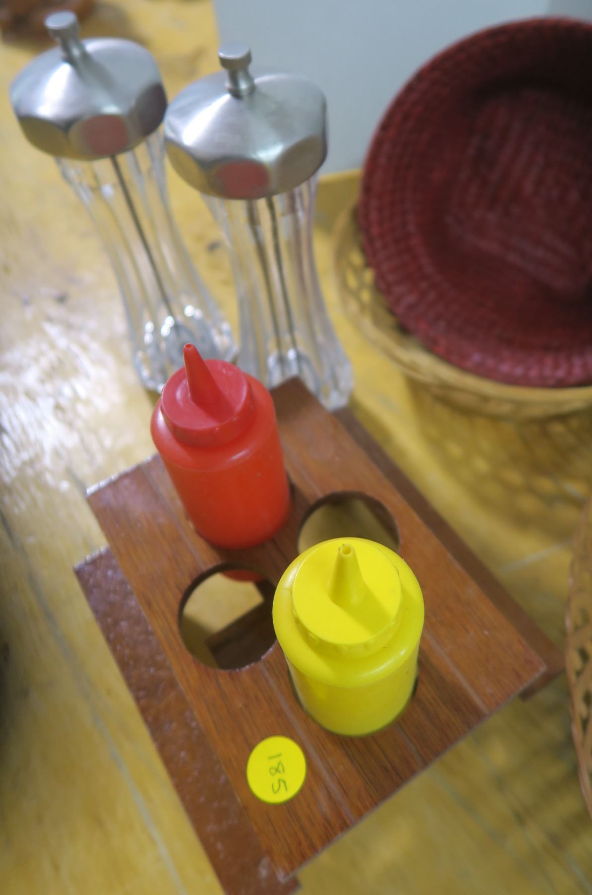 Wicker Baskets w/ Condiment Picnic Table + Salt / Pepper Grinders