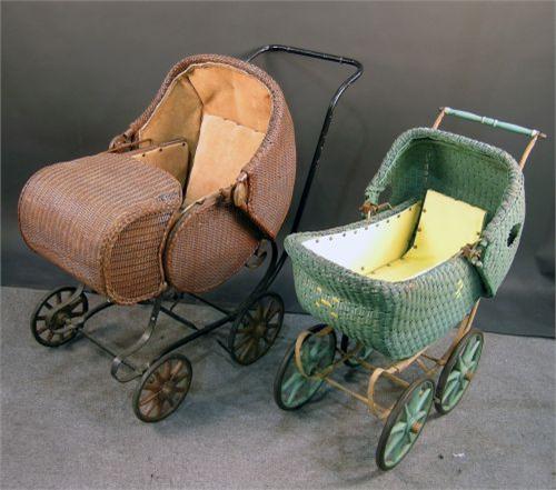 Wicker Buggy (Lot of 2) 1 Full Size & 1 Doll Size Brown in color
