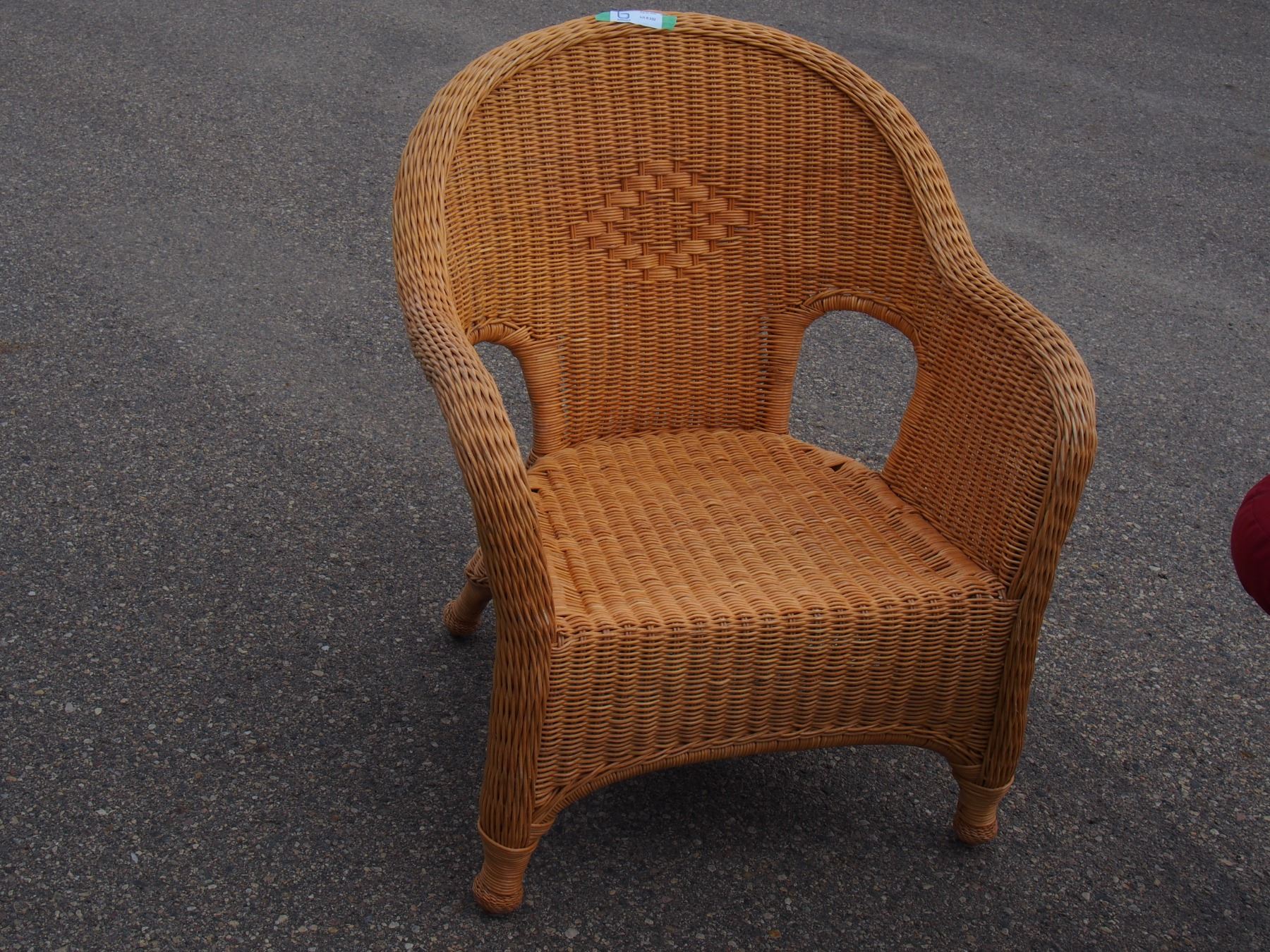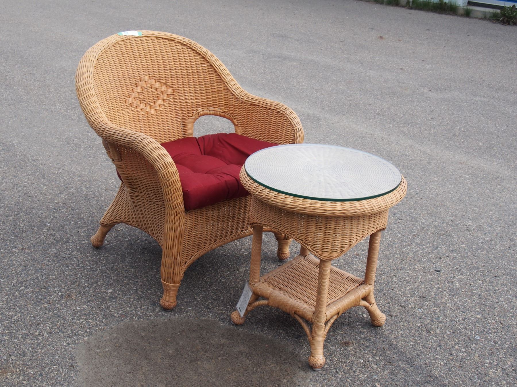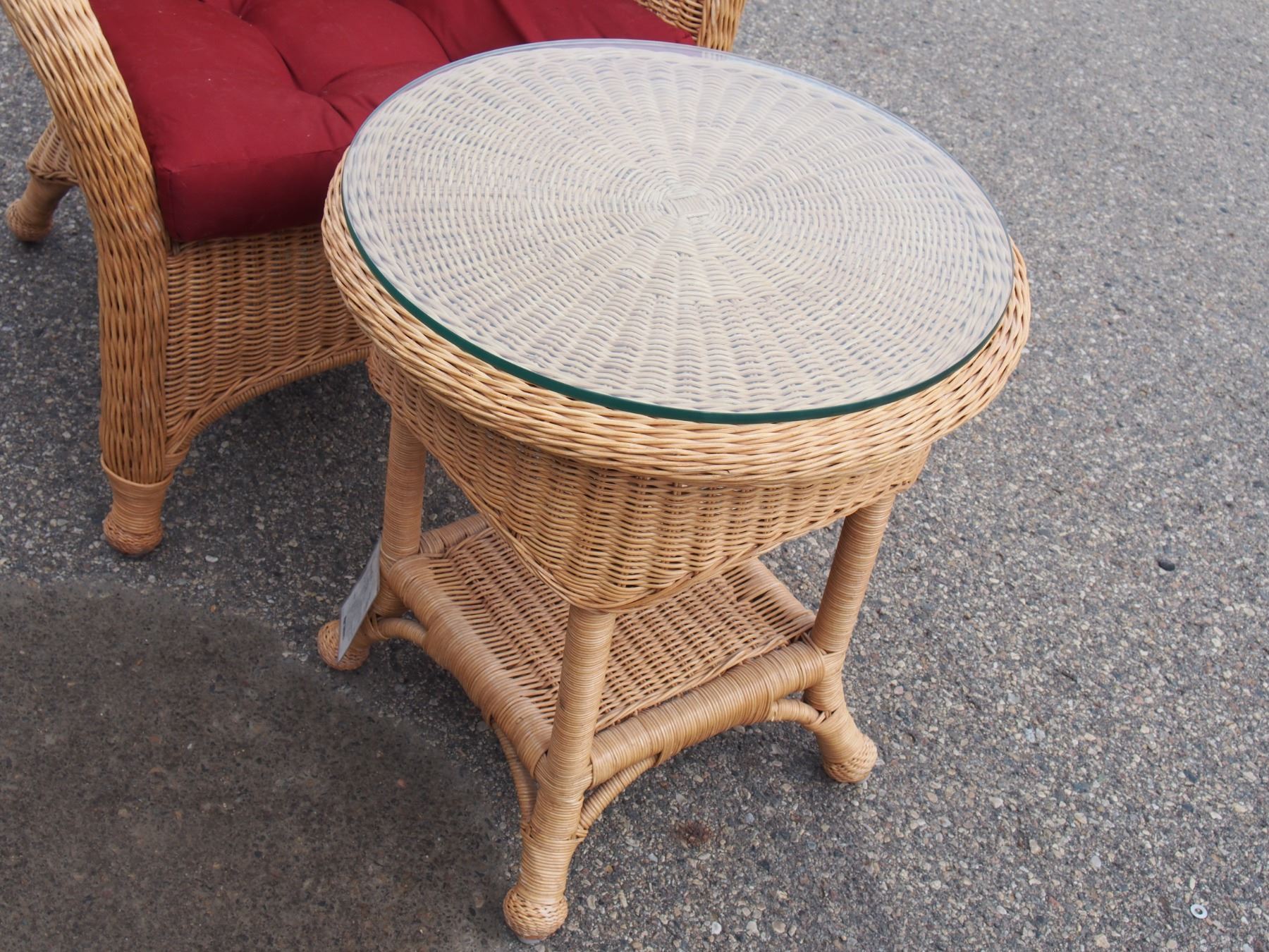 Wicker Chair 35" T and Stand with Glass Top 23.75" T