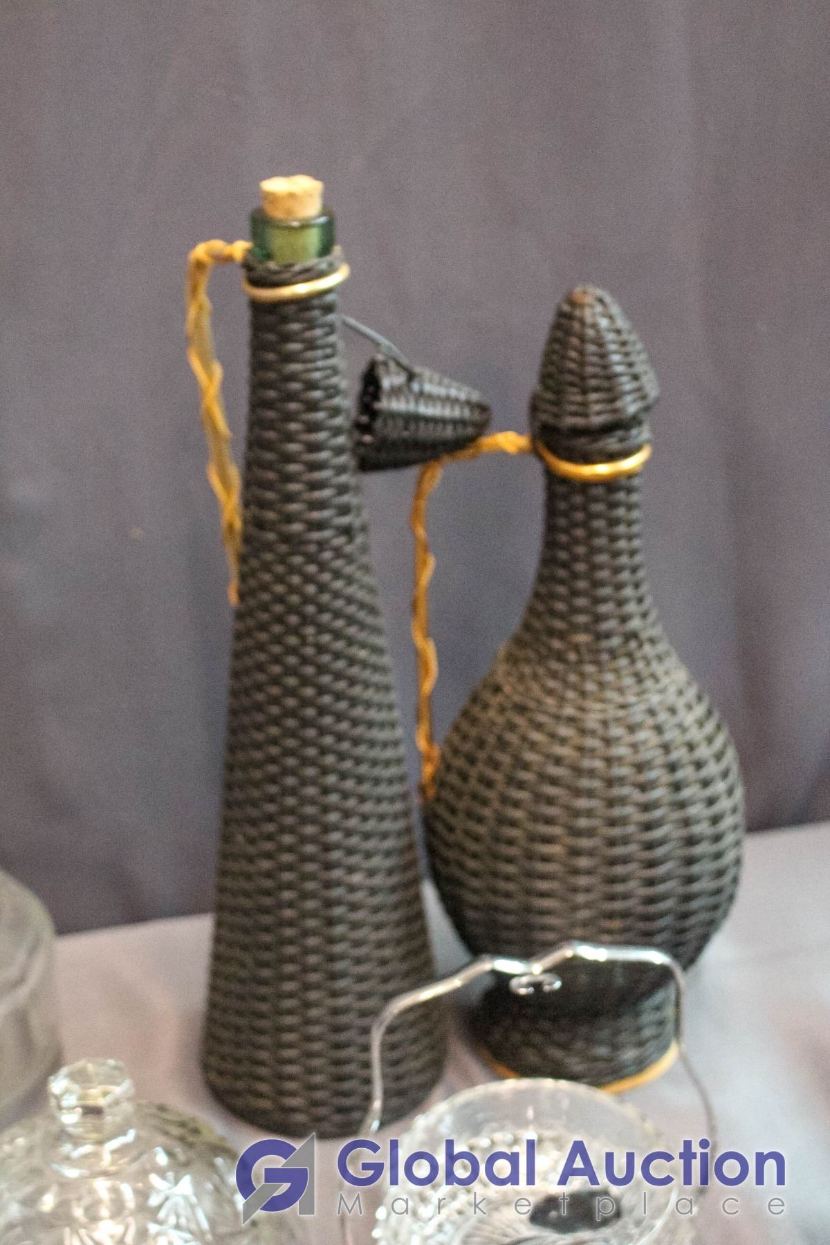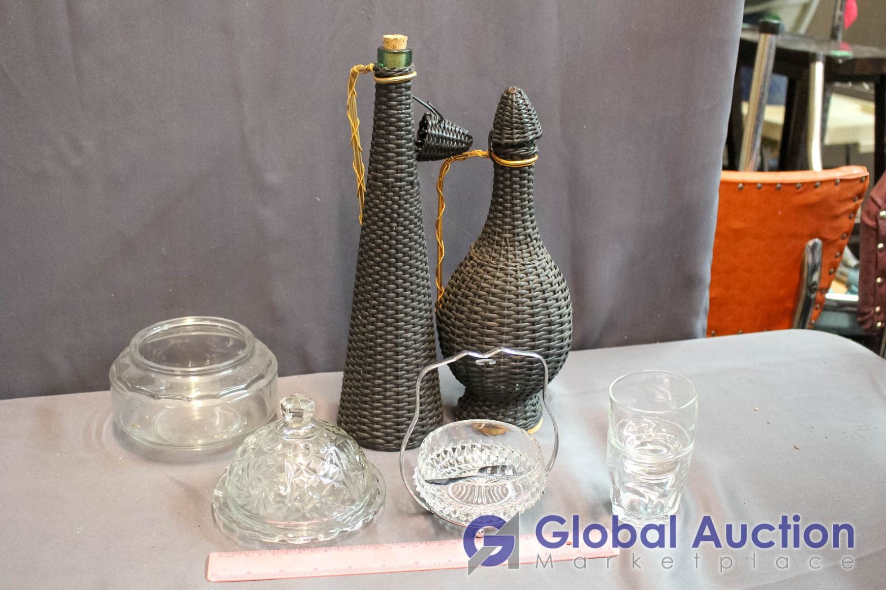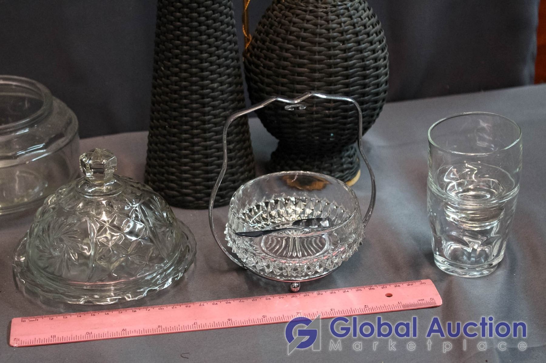 Wicker Decor, Crystal Sugar Bowl With Stand and Spoon, Glass Butter Dish With Cover, Assorted Glassware