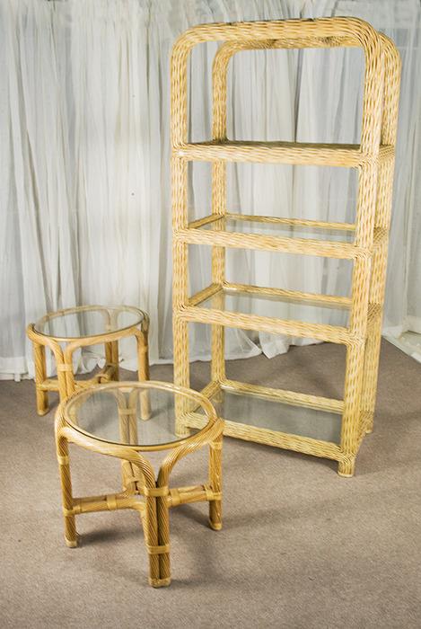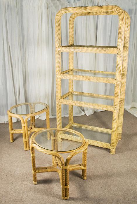 Wicker Patio Glass Shelf with matching Glass Top End Table Pairs
