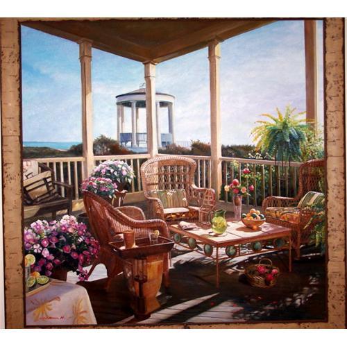porch with wicker furniture at the beach. 33 3/4x33 3/4.