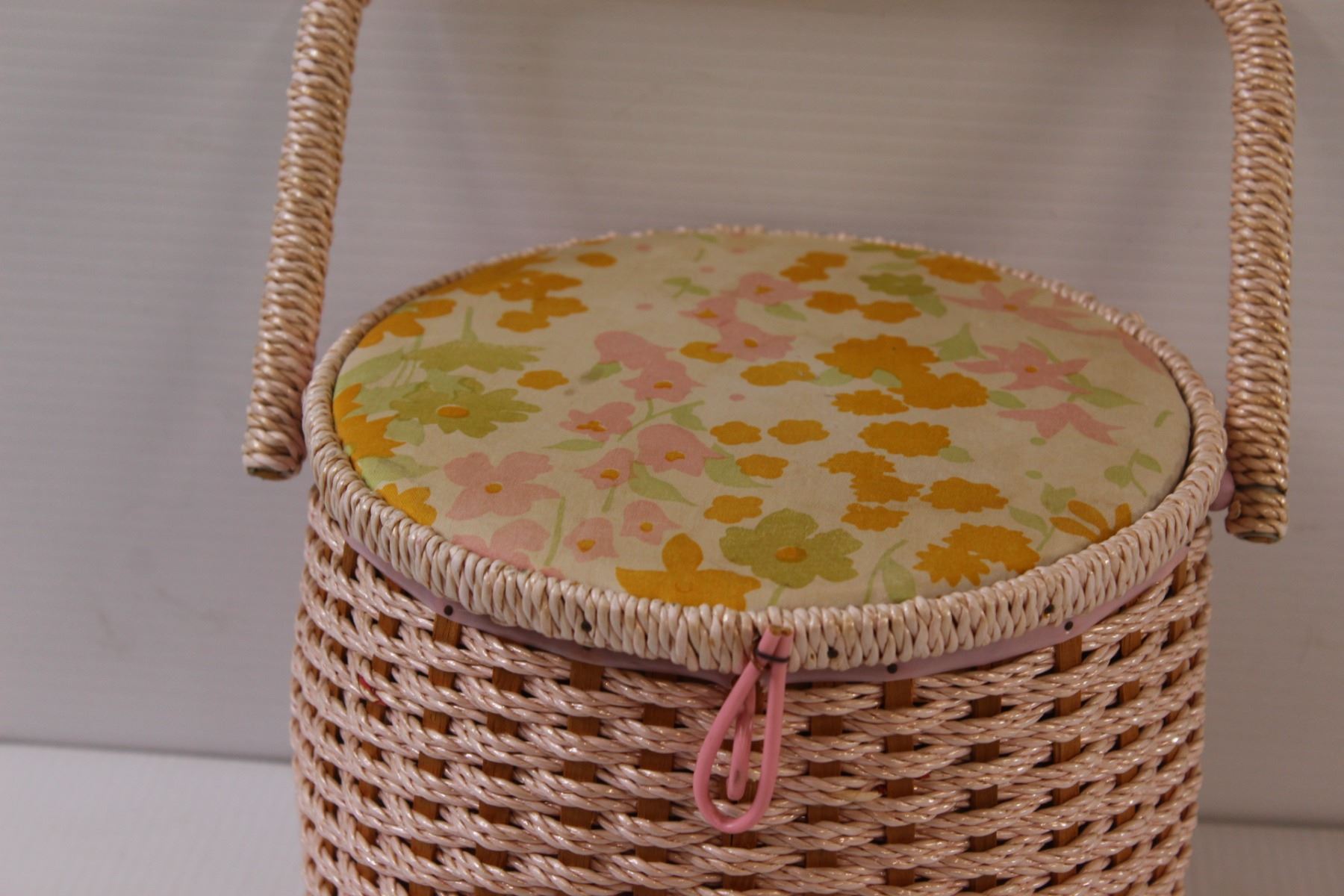 Wicker Sewing Basket w/ Built in Pin Cushion