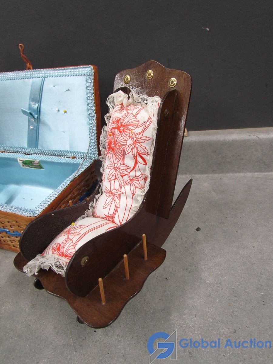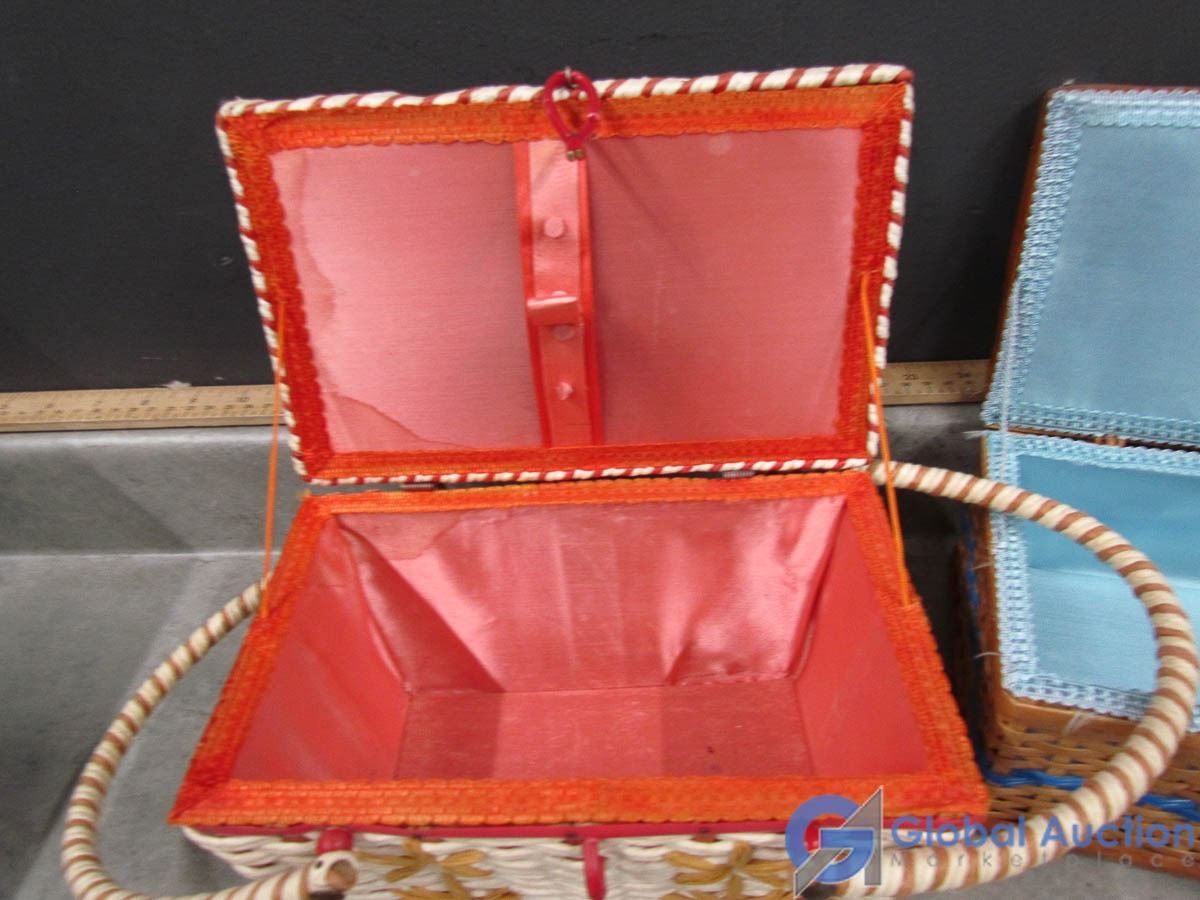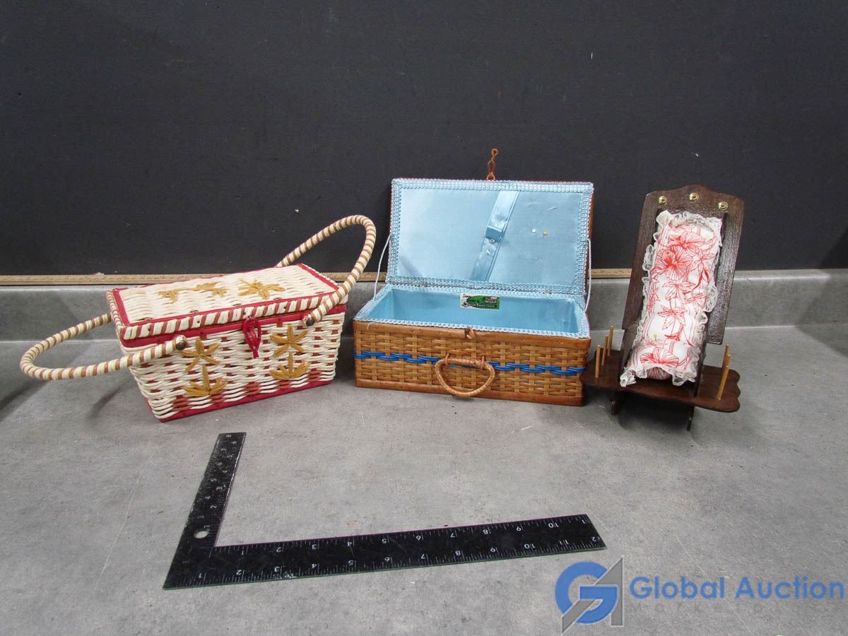 Wicker Sewing Baskets and Pin Cushion