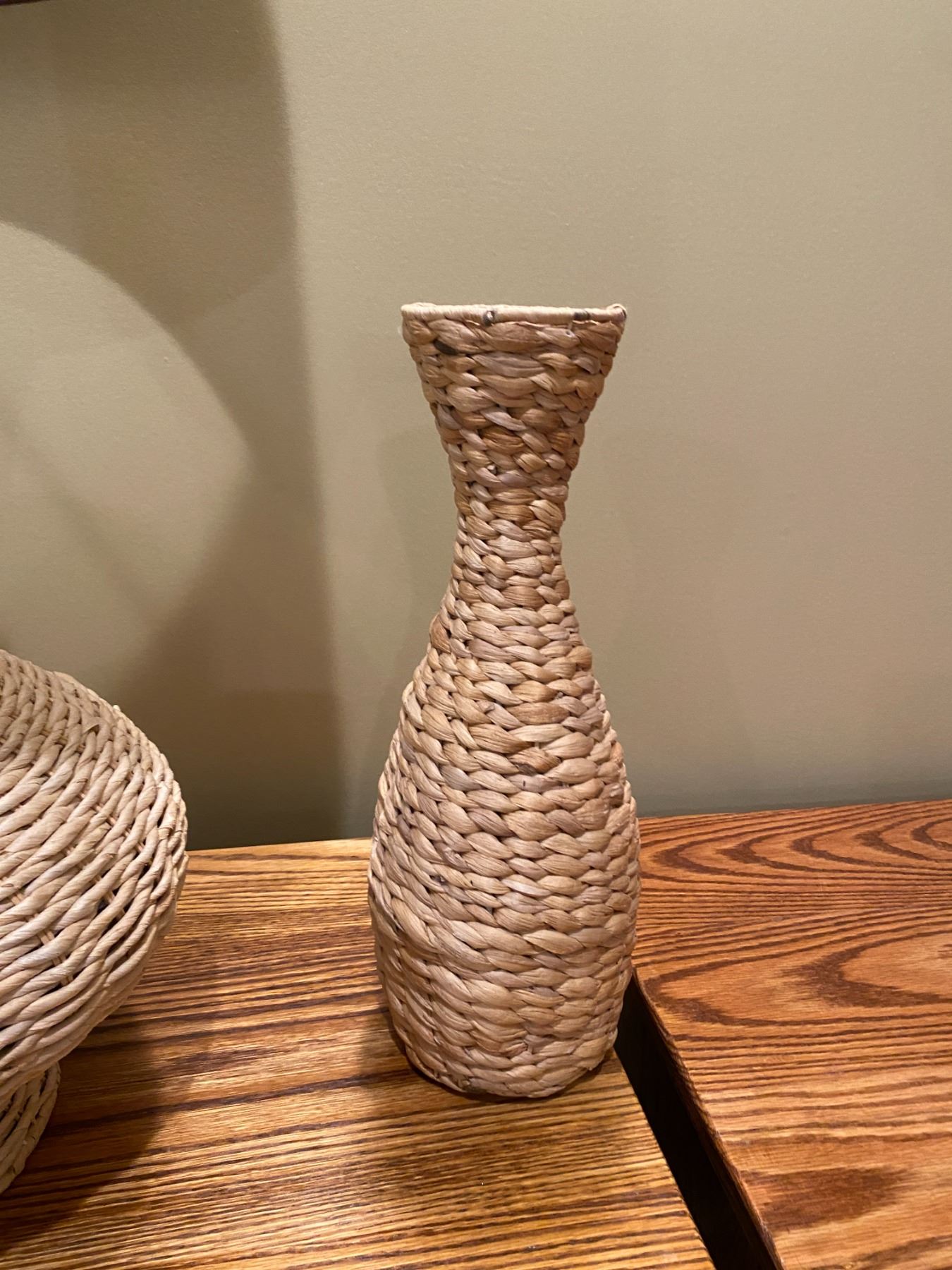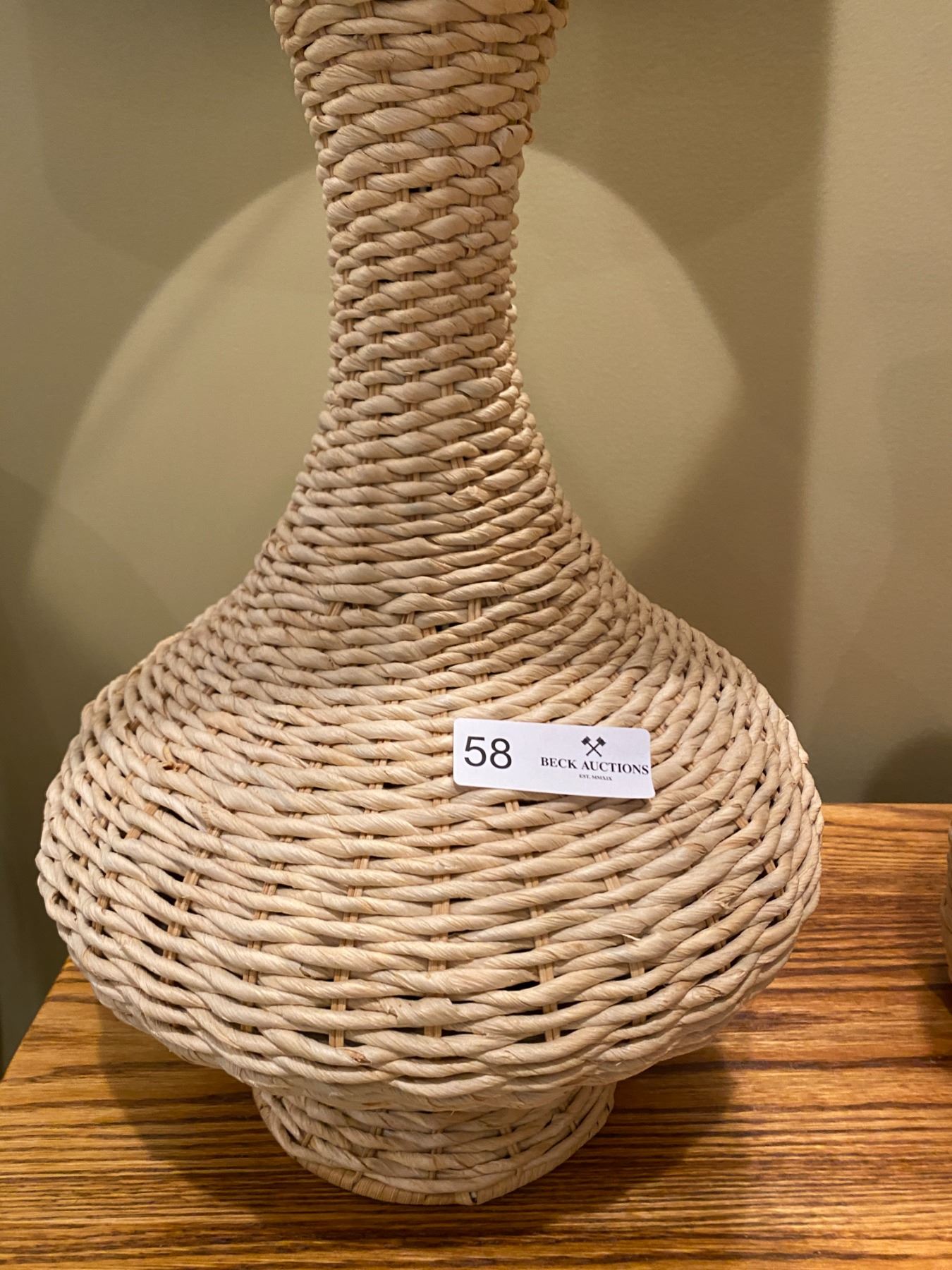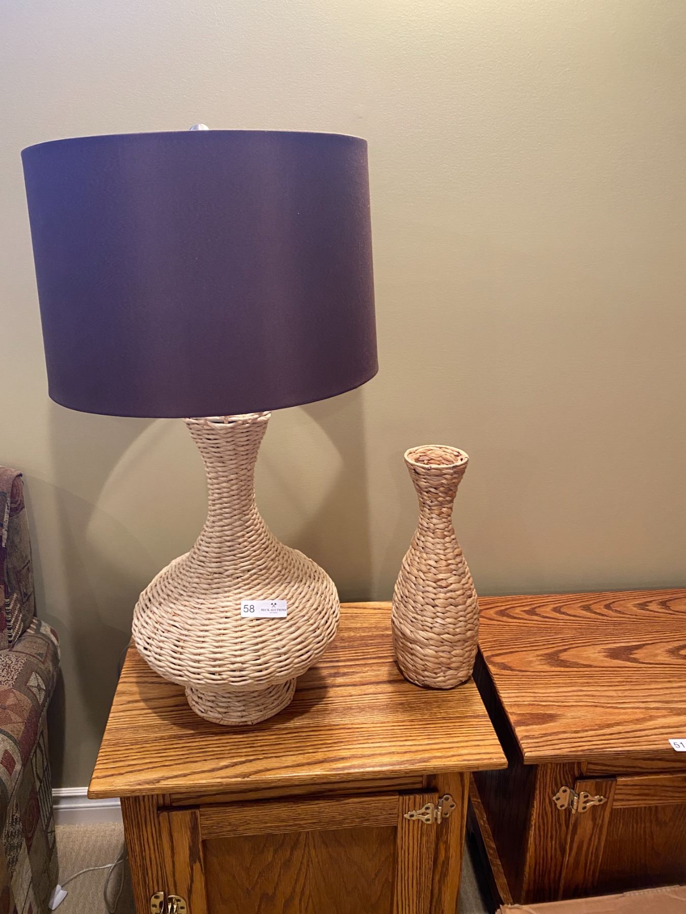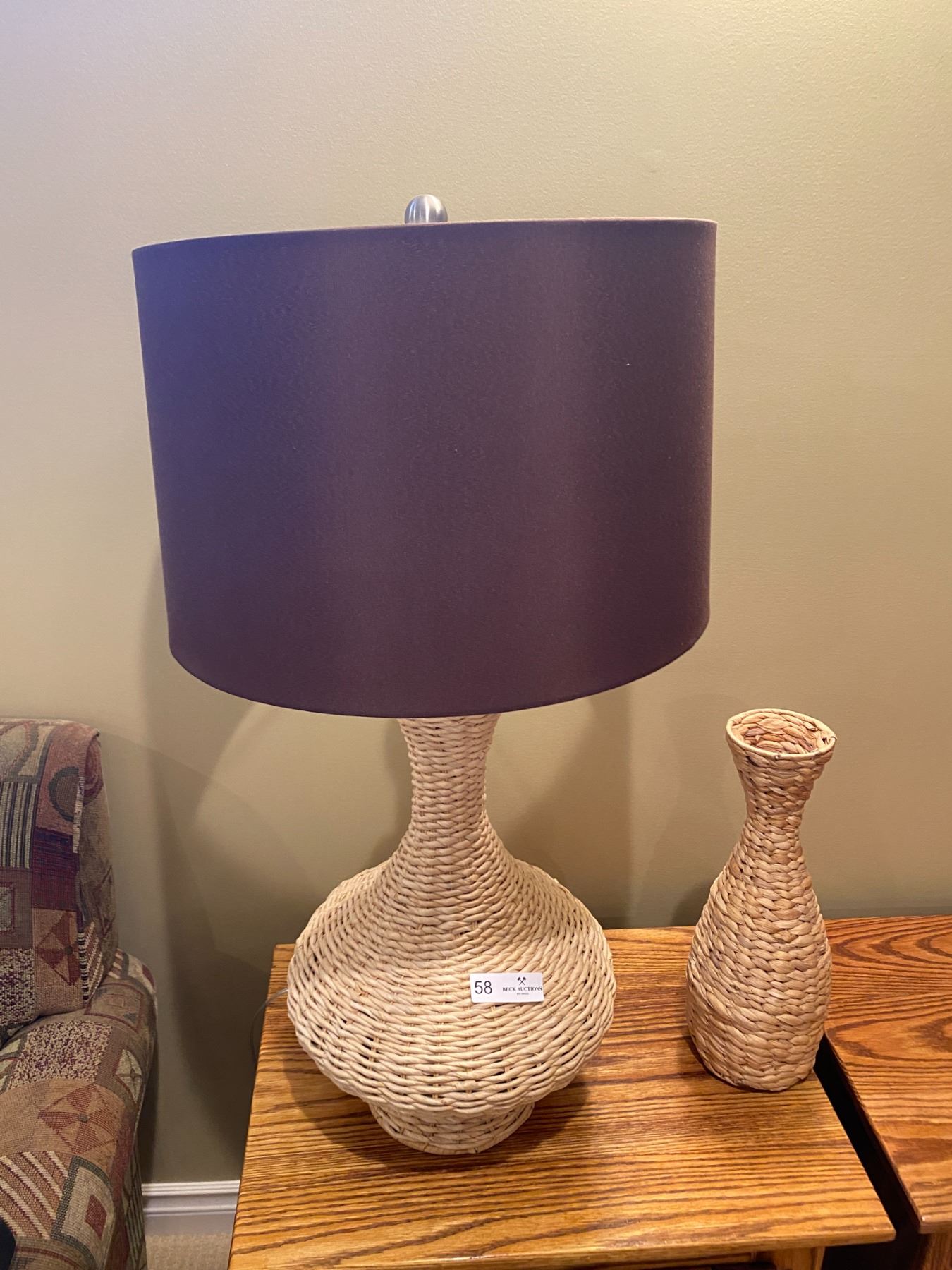 Wicker Table Lamp with Shade & Wicker Decorative Vase