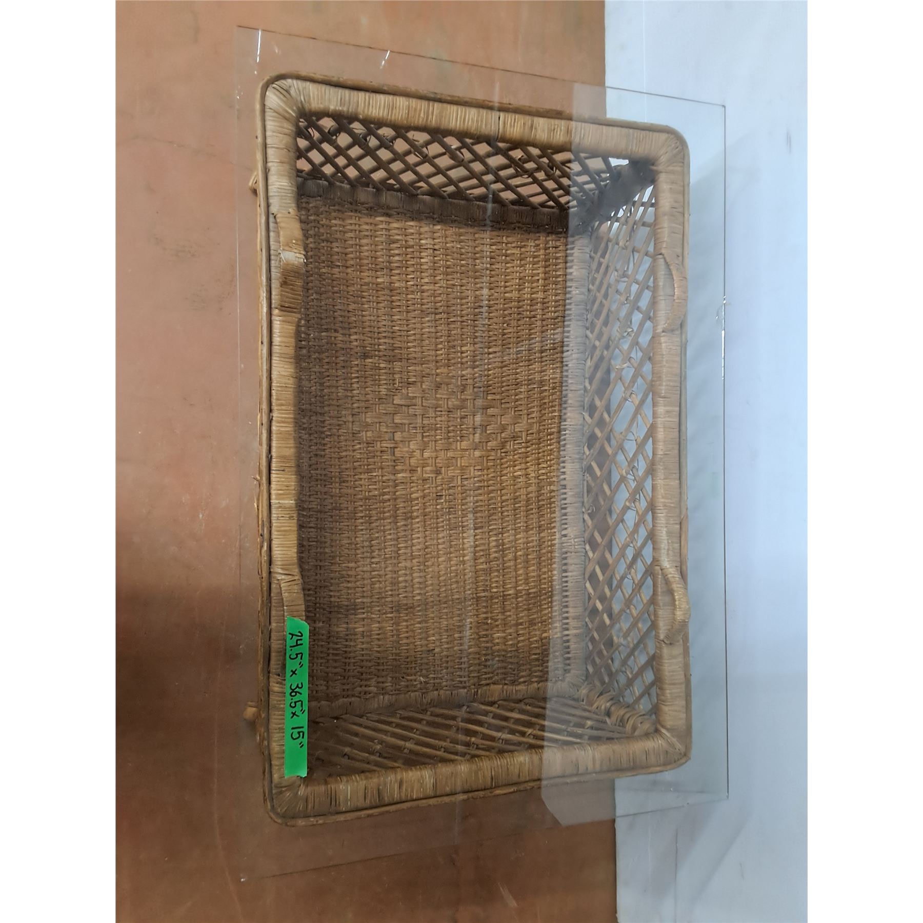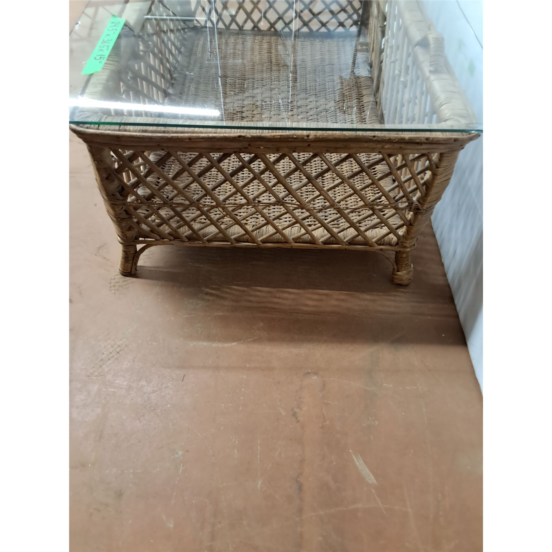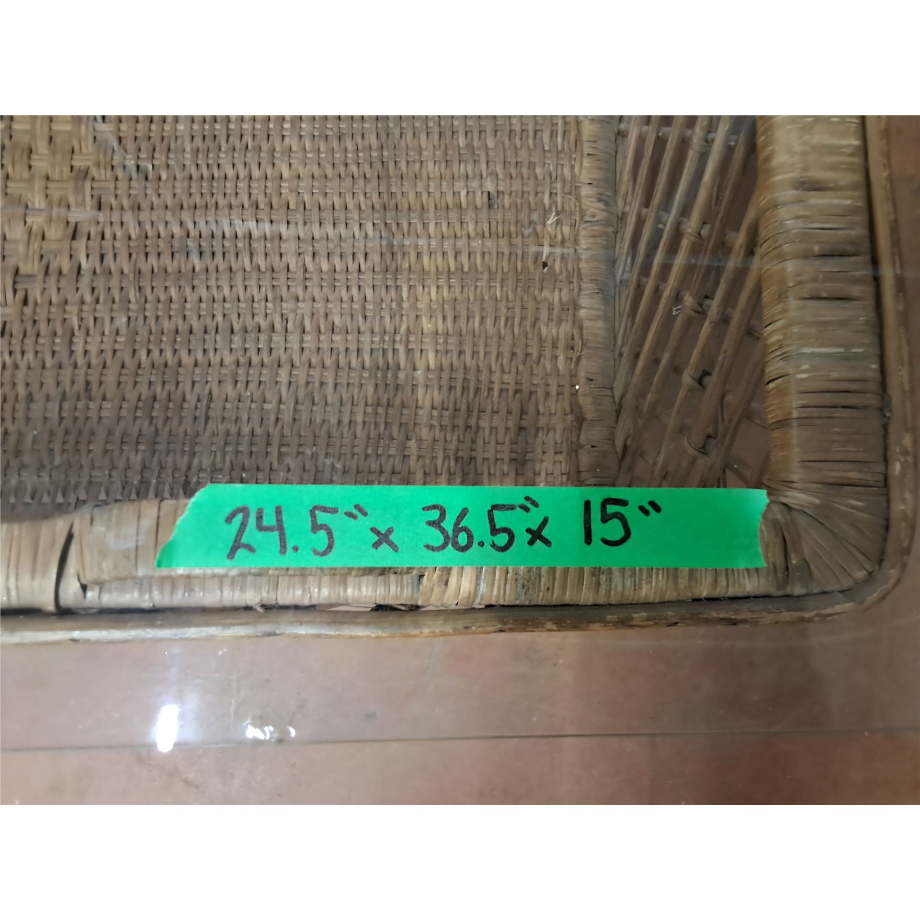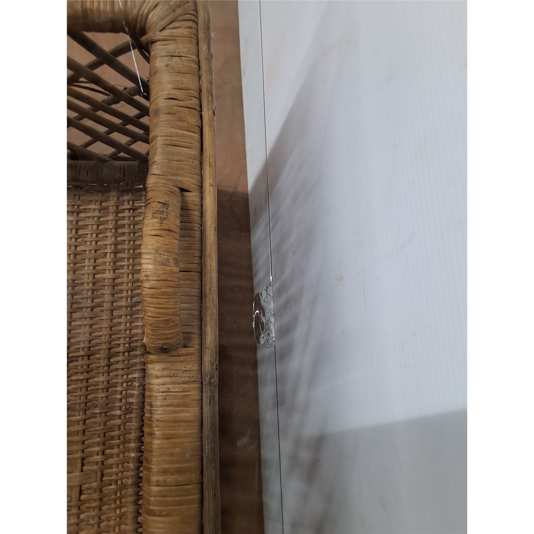 *Wicker Table with Glass Top- Some Chips, Cannot Ship