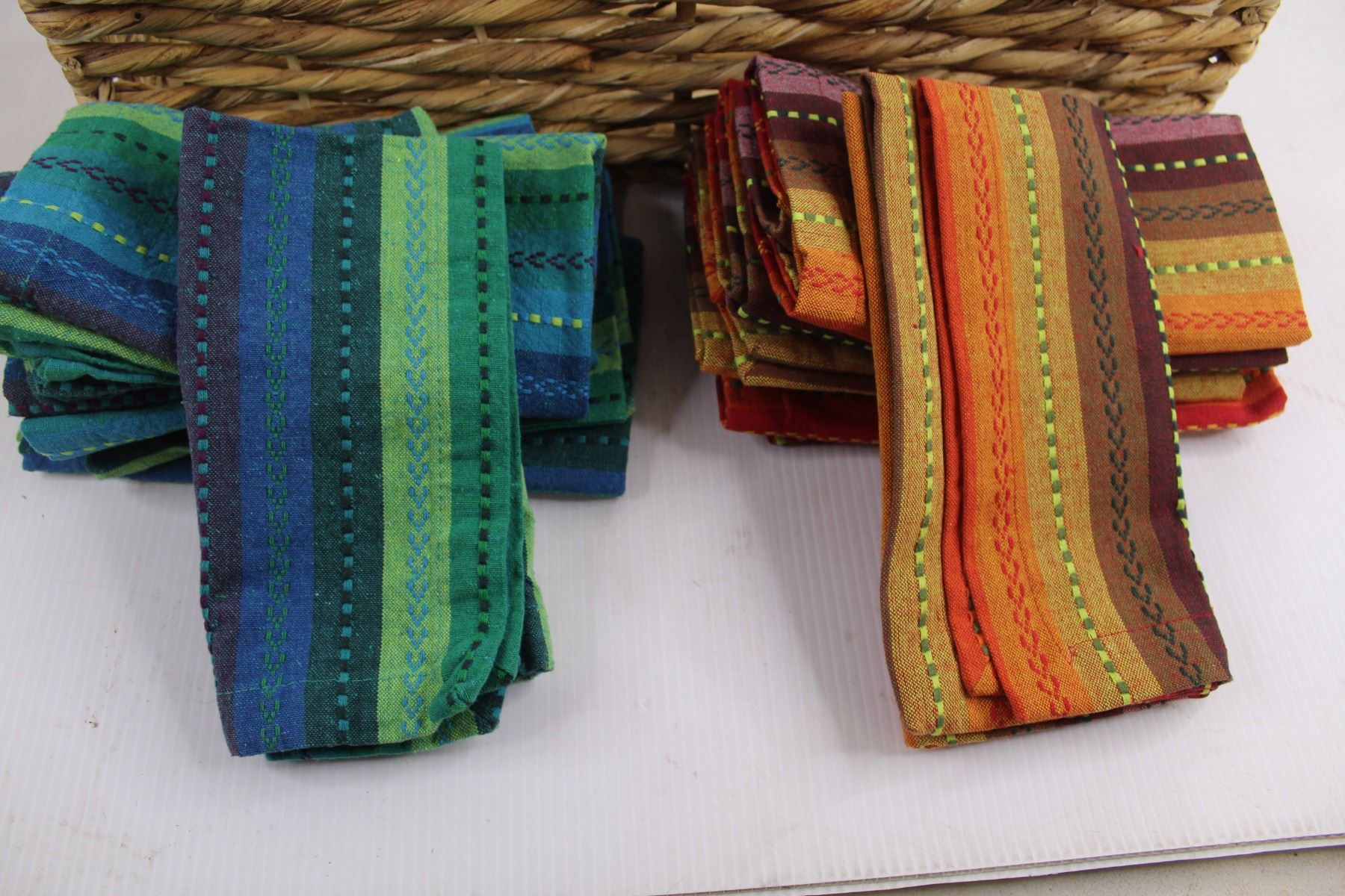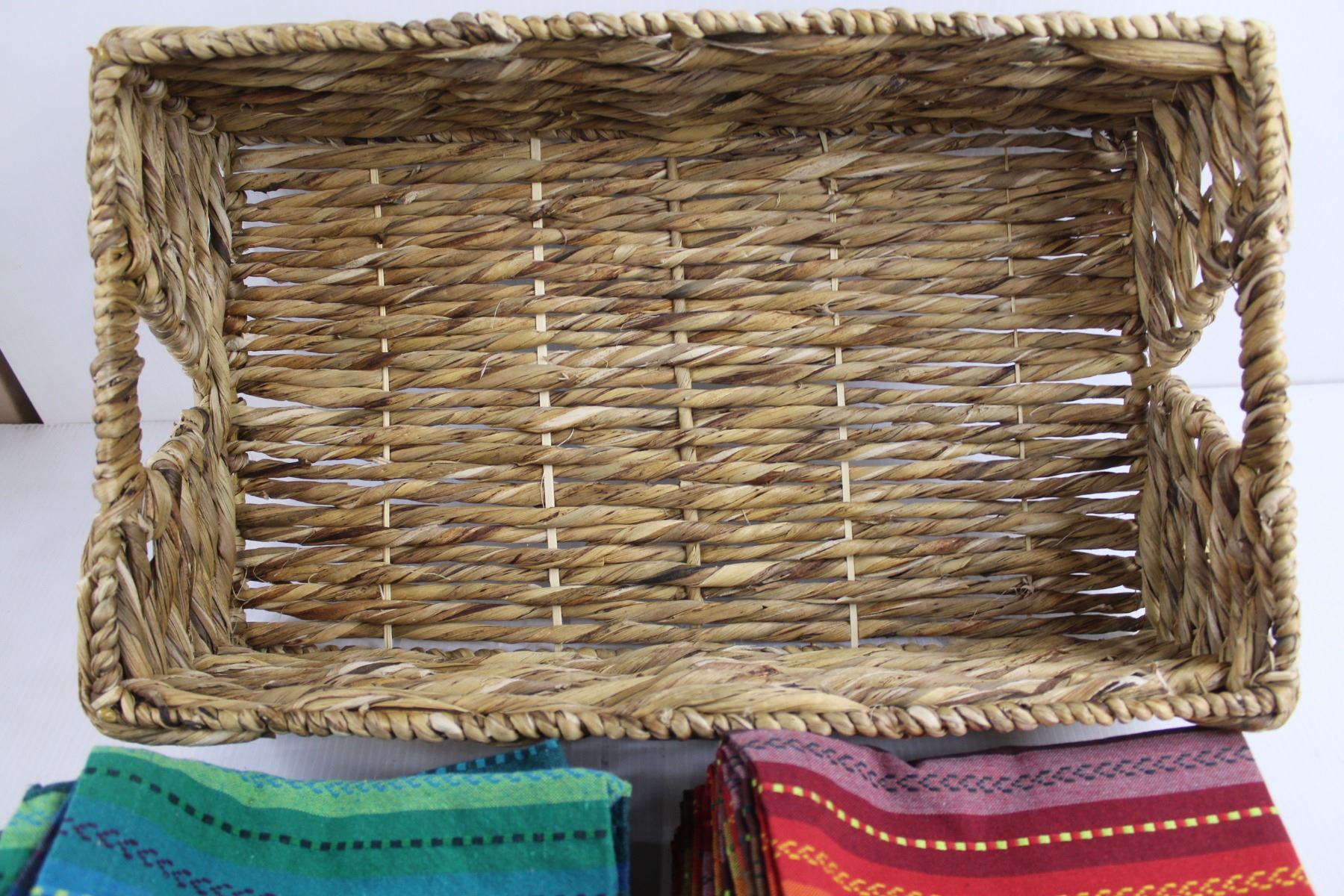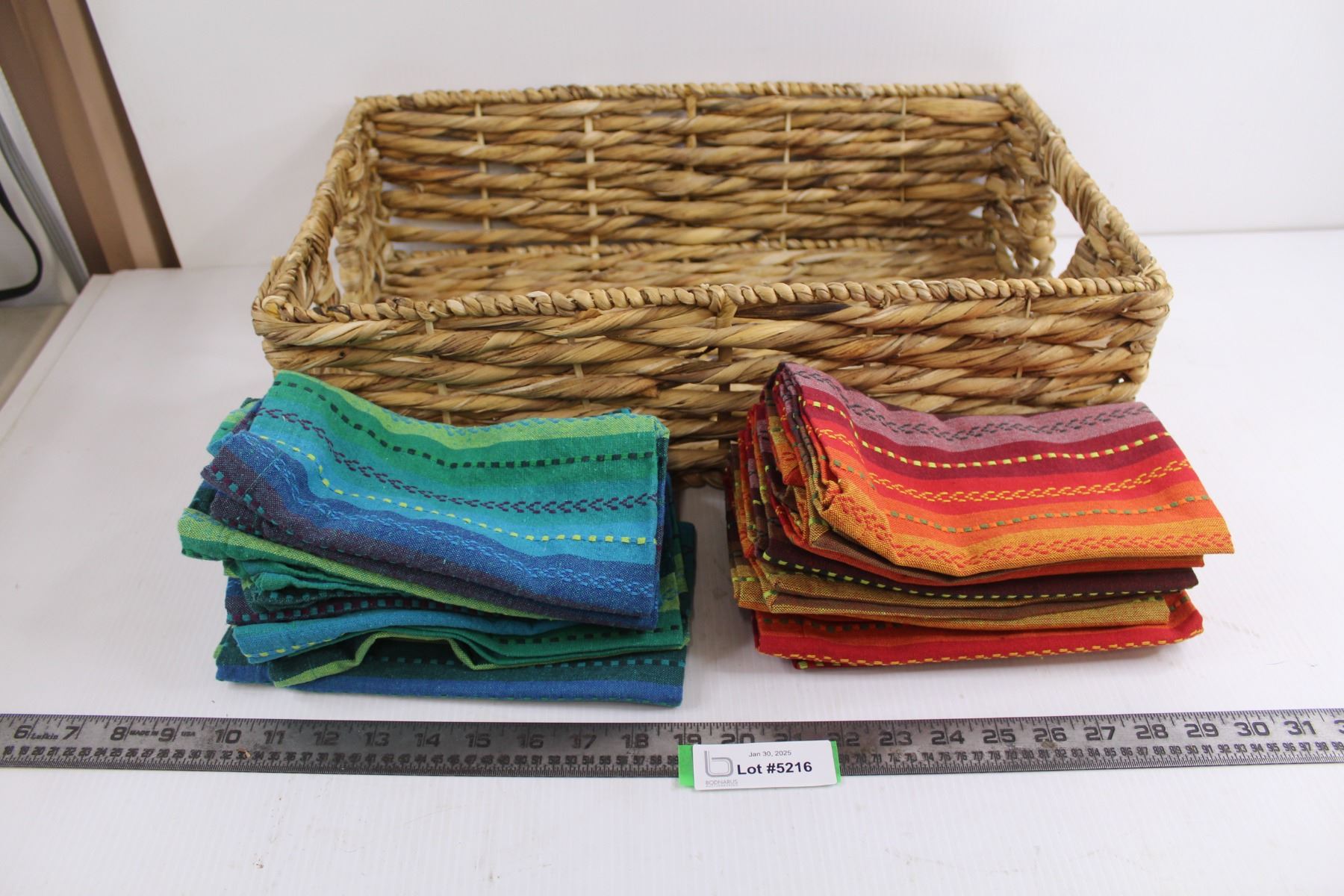 Wicker Weave Storage Basket 20" x 12" x 6", (2) Sets of 6 Fabric Napkins