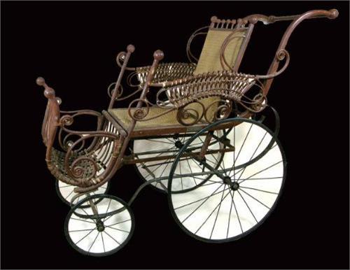 Wicker baby buggy, spoke wheels