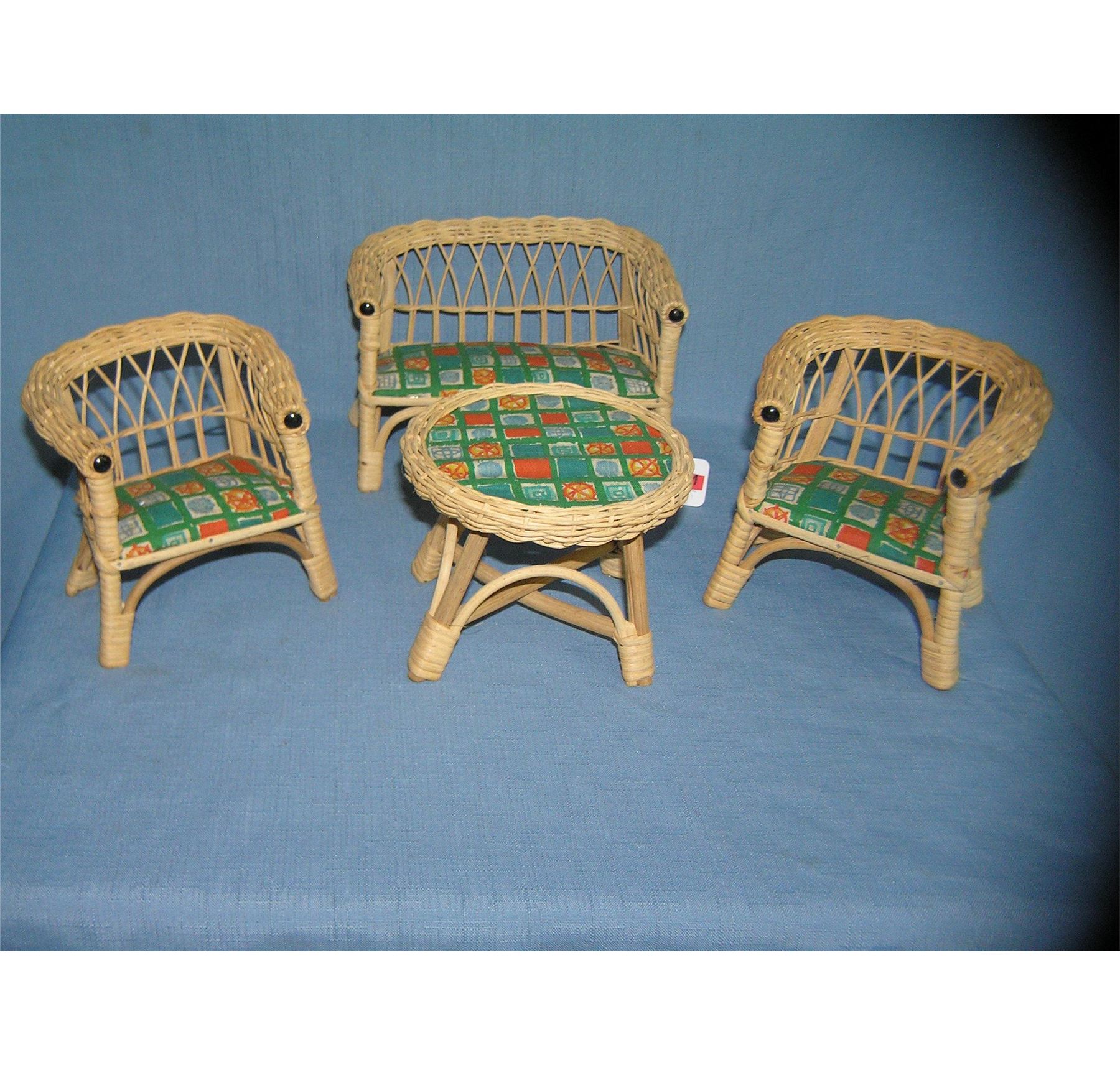 Great vintage wicker child's table and chair set with love seat very high quality circa 1950's est. value $175.00-$200.00
