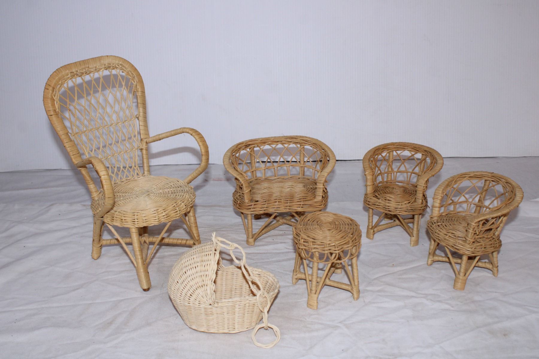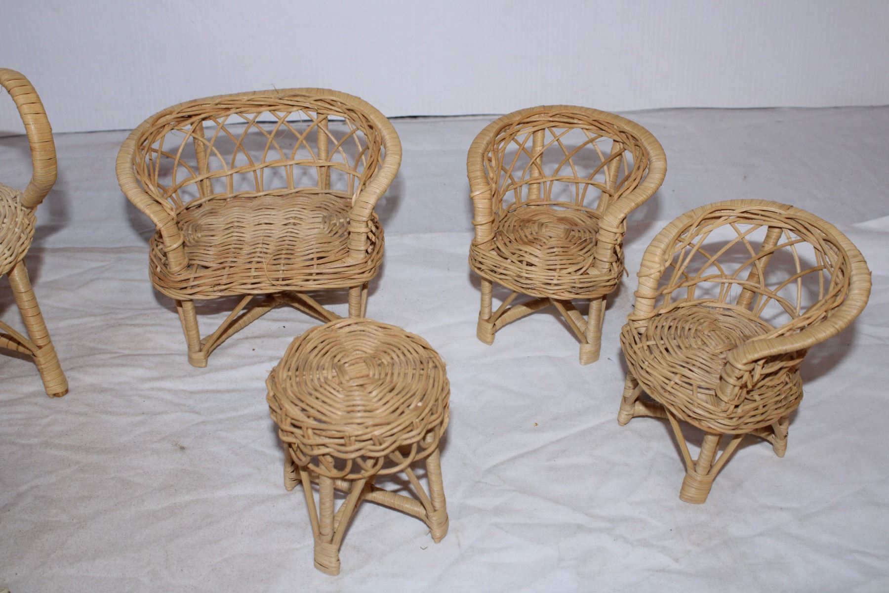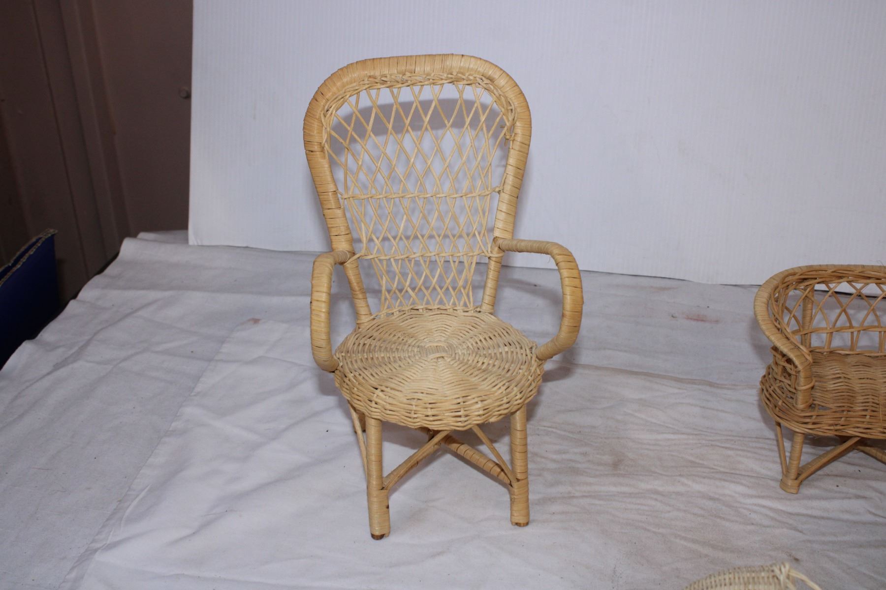 Wicker doll chair set