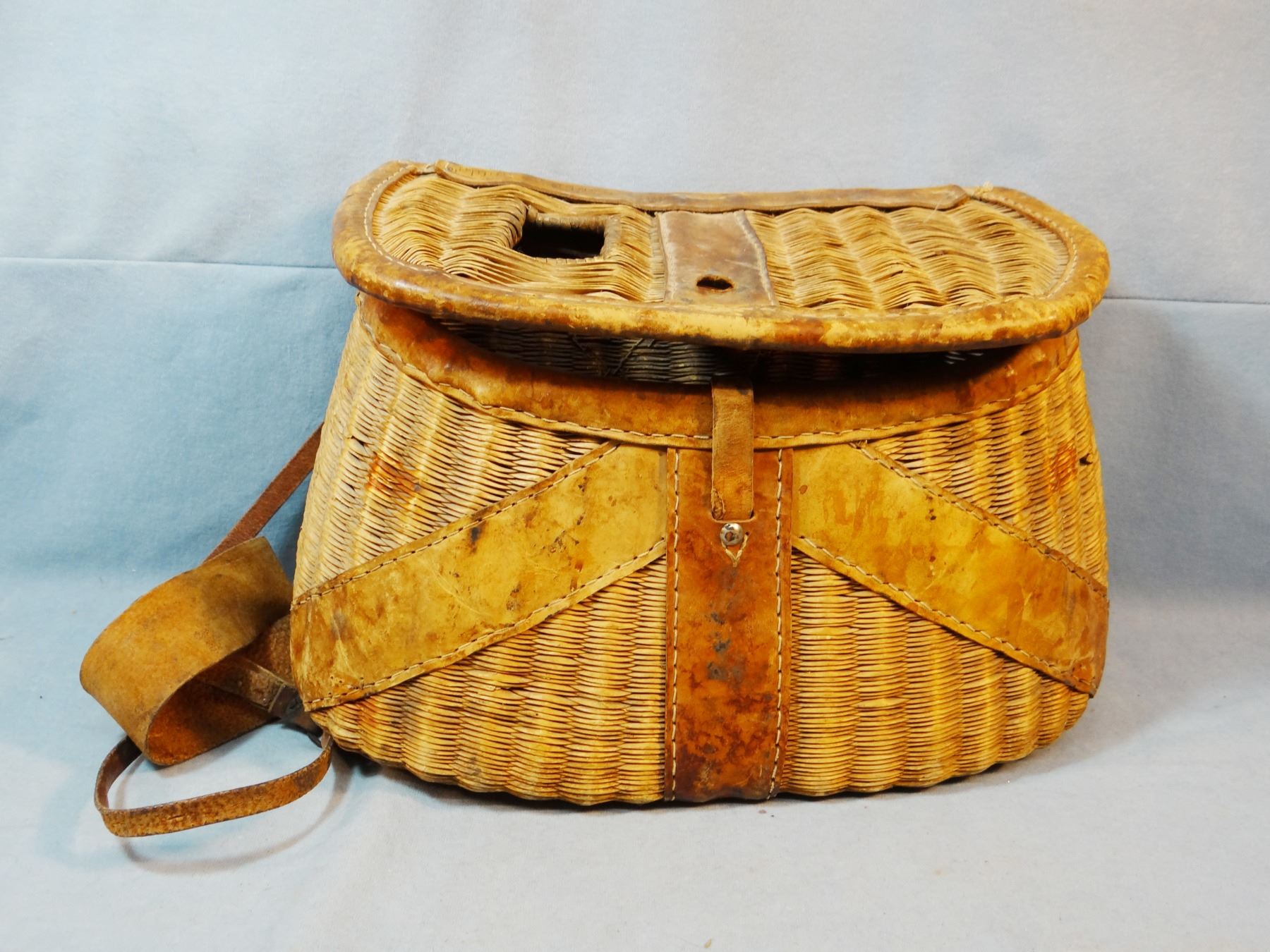 Wicker fishing creel, 10" h x 13" w, nice condition