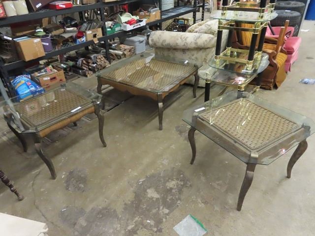Wicker w Glass Top Coffee & End Tables Set Coffee Table 19"H x 40" X 40", End Tables 21"H x 29" X 29"