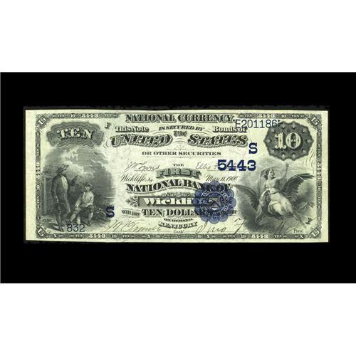 <B>Wickliffe, KY</B></I> - $10 1882 Date Back Fr. 545 <B>The First NB</B></I> Ch. # (S)5443<BR>While the two Brown Backs above are hardly representative of the amazing quality that marks this collection, this piece certainly fits perfectly with the rest of the Gale holdings. It's the nicest note known from this one bank town by at least three full grades, and one which is certain to delight its fortunate new owner. <B>Very Fine-Extremely Fine,</B></I> with an exceptionally vivid blue overprint and great pen signatures.