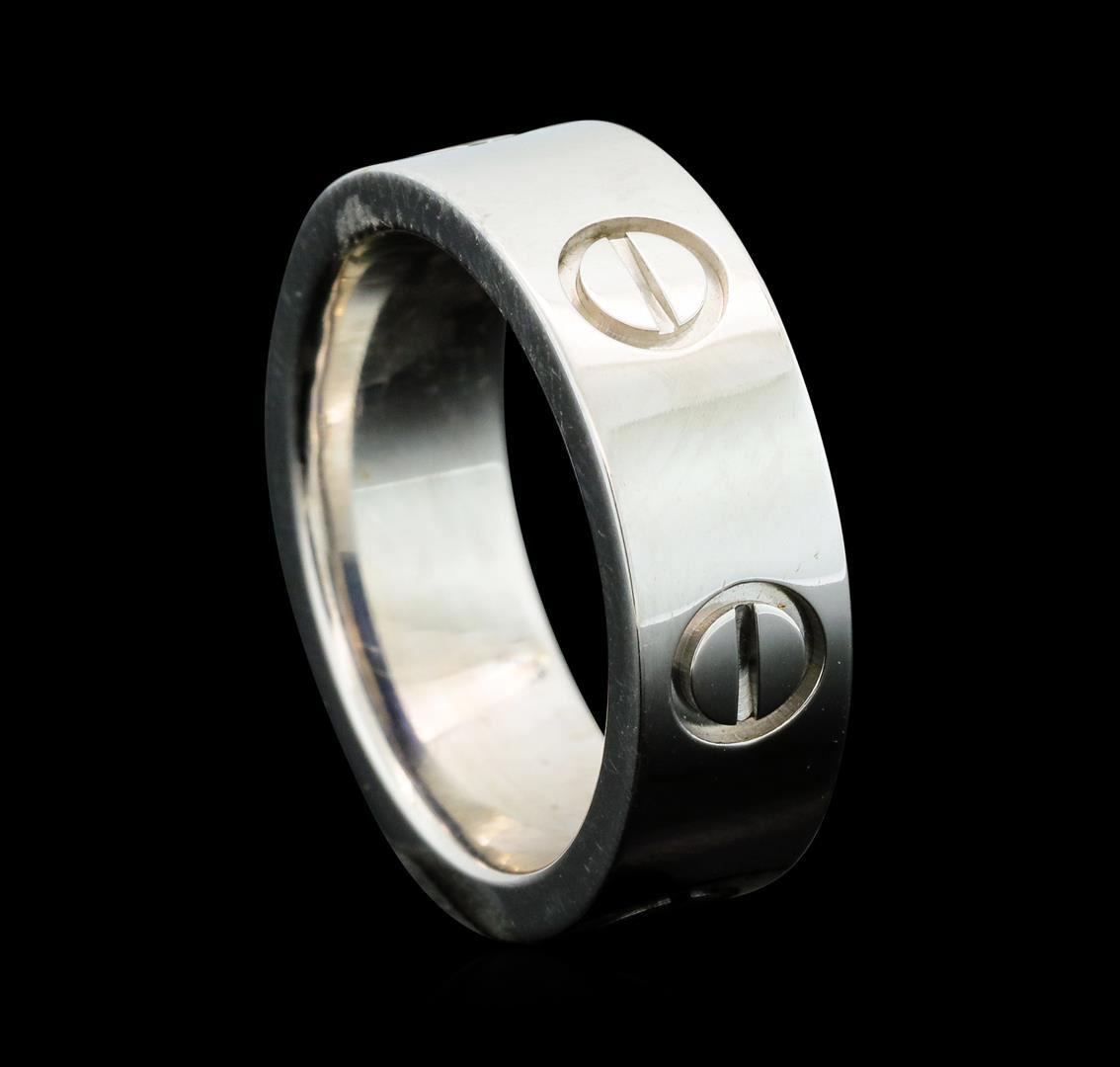 One screw back design wide band featuring: 18KT white gold weighing 8.00 grams.