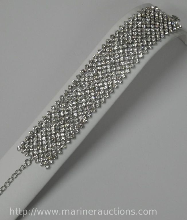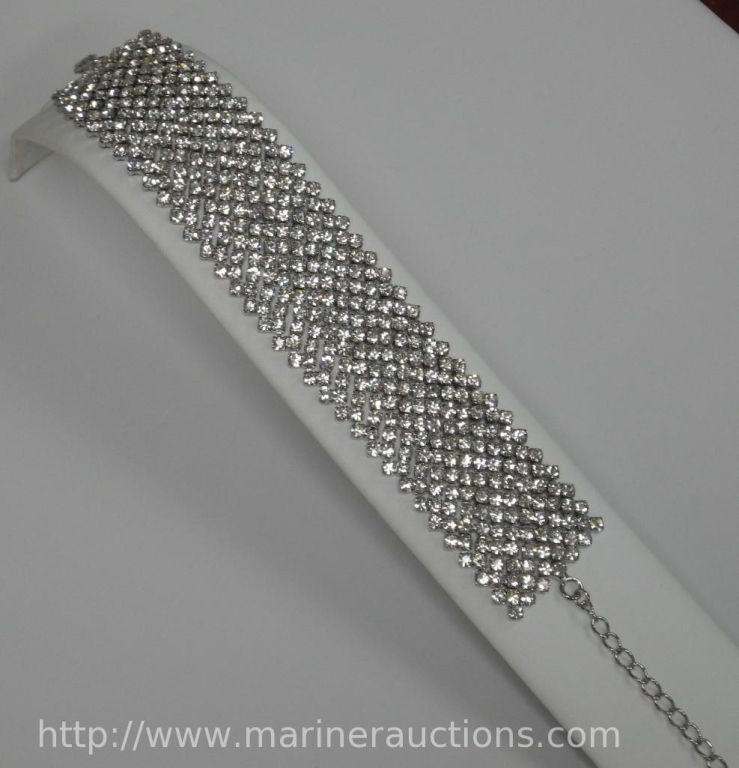 Wide Flex Bracelet w/ Swarovski Elements By Jean Lattelle. Approximately 6 inches w/ 3 inch Extension.