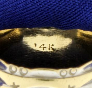 In 14K yellow & white gold, it is 10.8mm wide. Size 9 9.2g