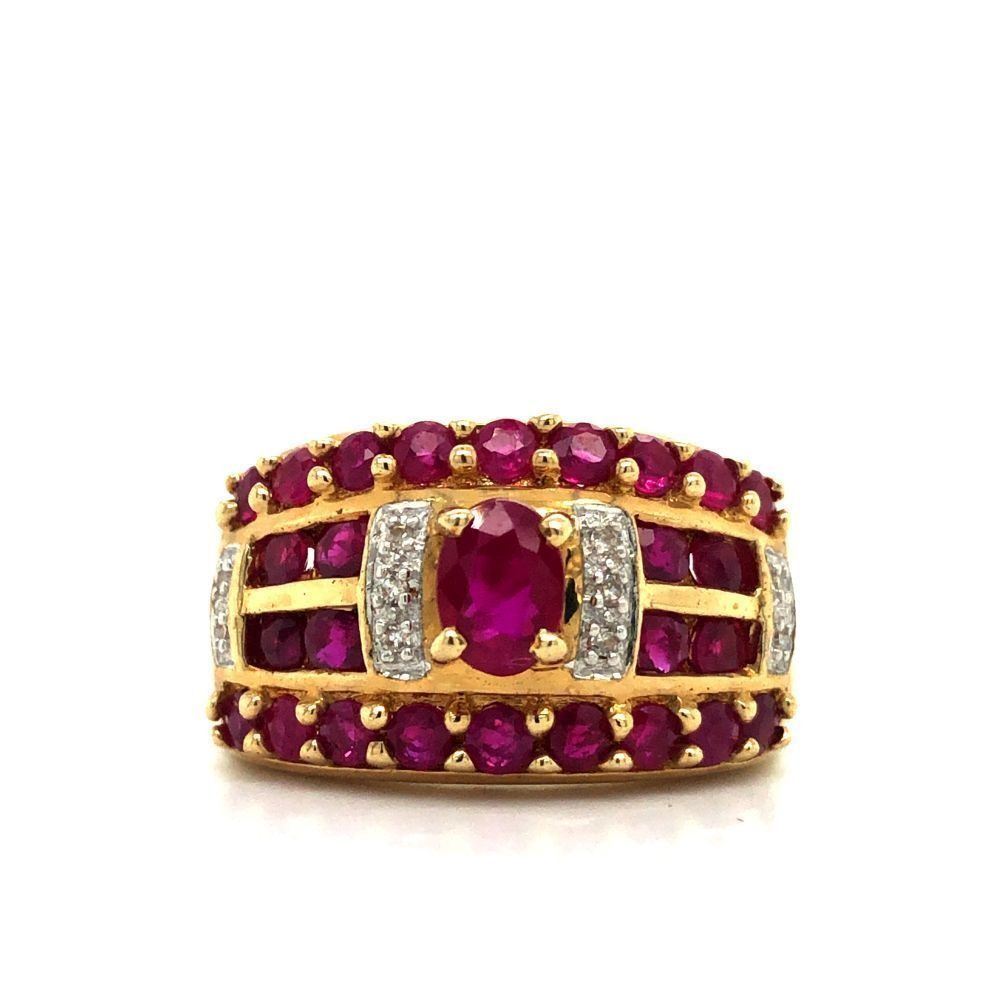 TITLE DESCRIPTION: Wide Ruby and Diamond Tapered Band