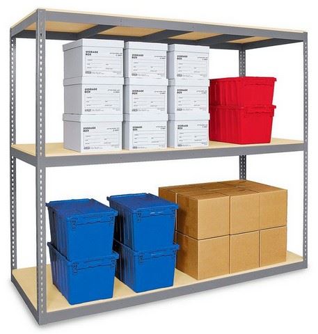 Store and unload heavy, bulky items with convenient four-way access to shelves. Photo is stock photo, not actual shelves.