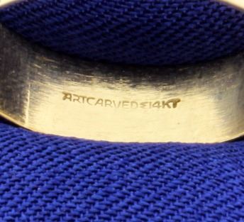 In 14K yellow gold, the band is 5.8mm wide. Size 9 1/4 3.9g