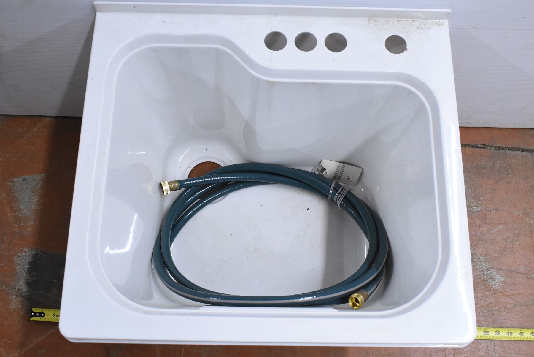 *Wide White Plastic Sink w/ Hose – 24”x21.5”x17.5”