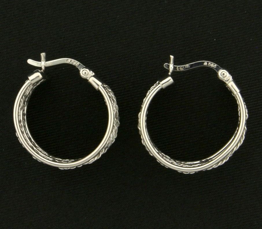 In 14k white gold. 3/4" diameter and 10mm wide with hatch openings. 5.3g.