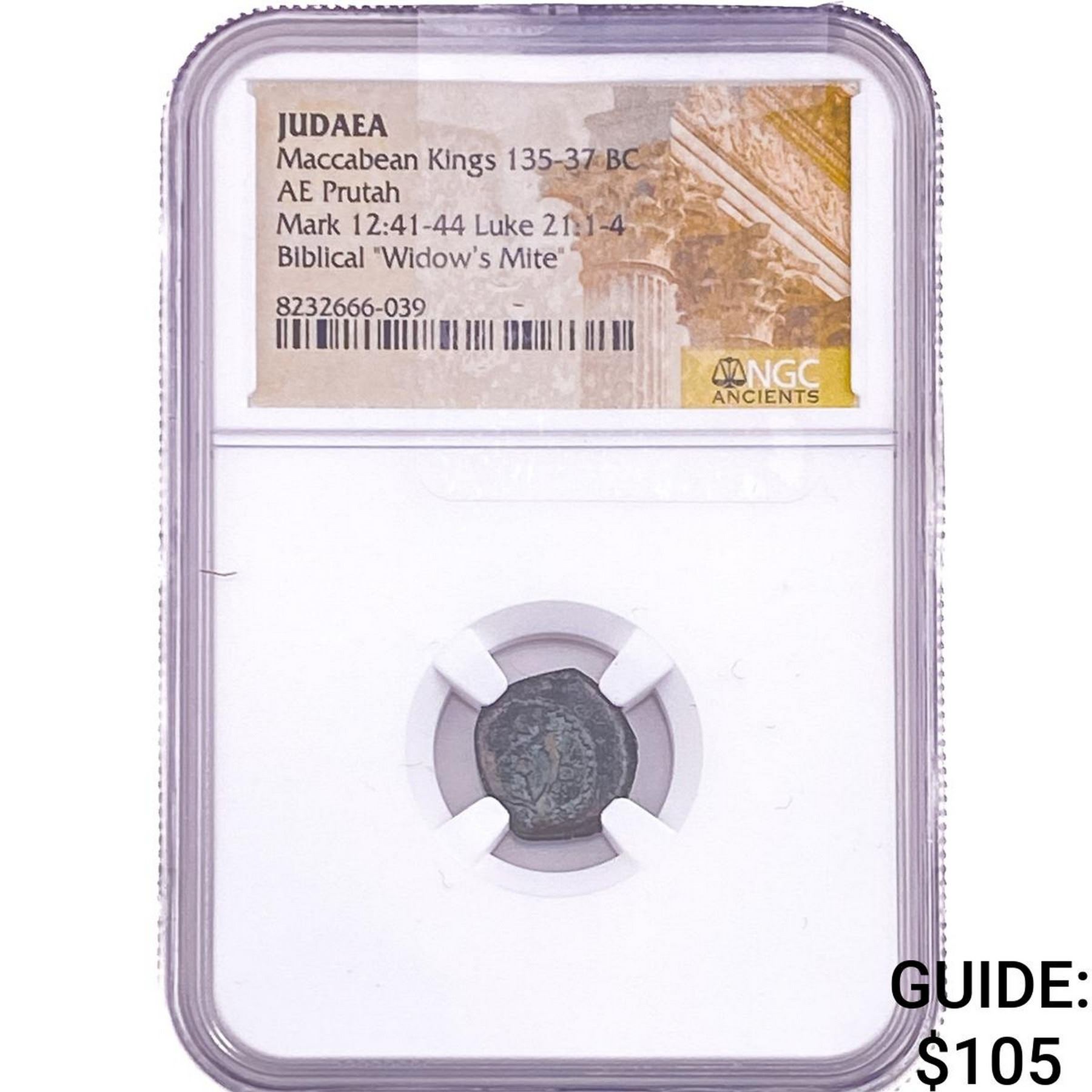 Widows Mite AE Prutah JUDEA Maccabean Kings 100BC NGC