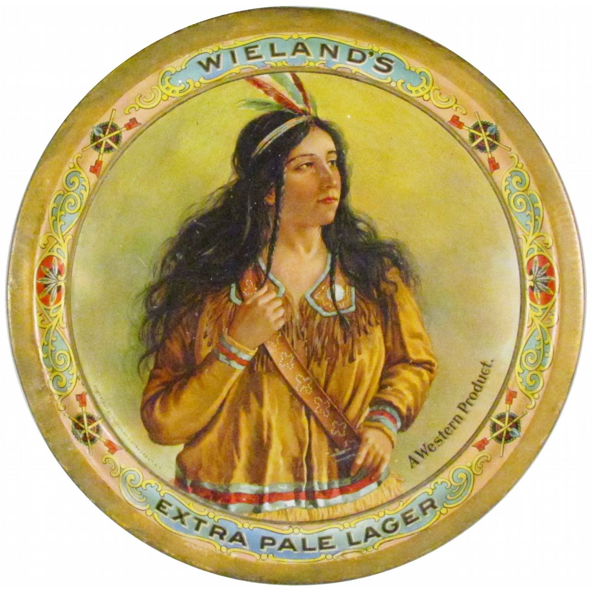 Wieland's Extra Pale Lager Tin Serving Tray. Kaufmann & Strauss Litho. Restored condition. 13 inch diameter.