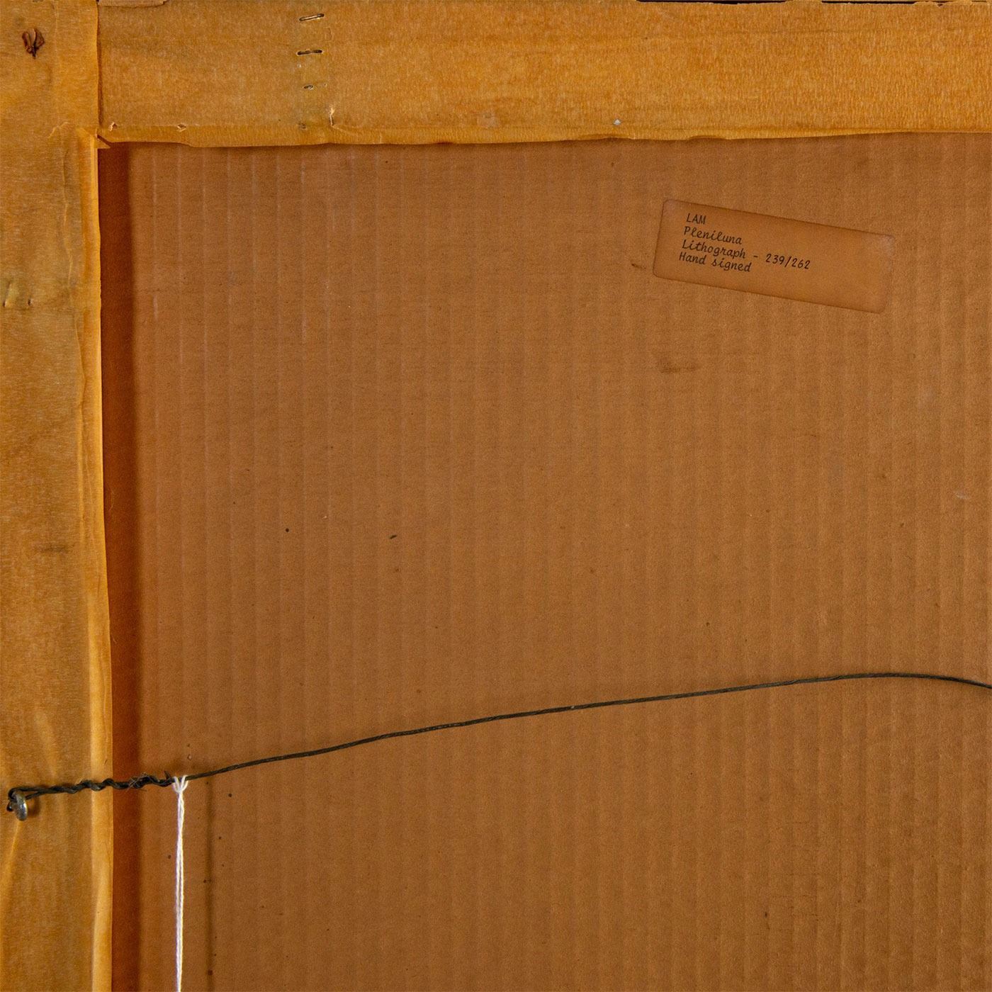 Original color lithograph in a limited edition 239 of 262 from the suite, Pleni Luna, numbered lower left. Signed lower right. Housed in a heavy gold frame. Wifredo Lam was a Cuban Impressionist and Modern artist who worked with various exhibitions in museums. Sight size: 25.5"H x 19.5"W. Frame: 32.5"H x 26.5"W. #art #lithograph